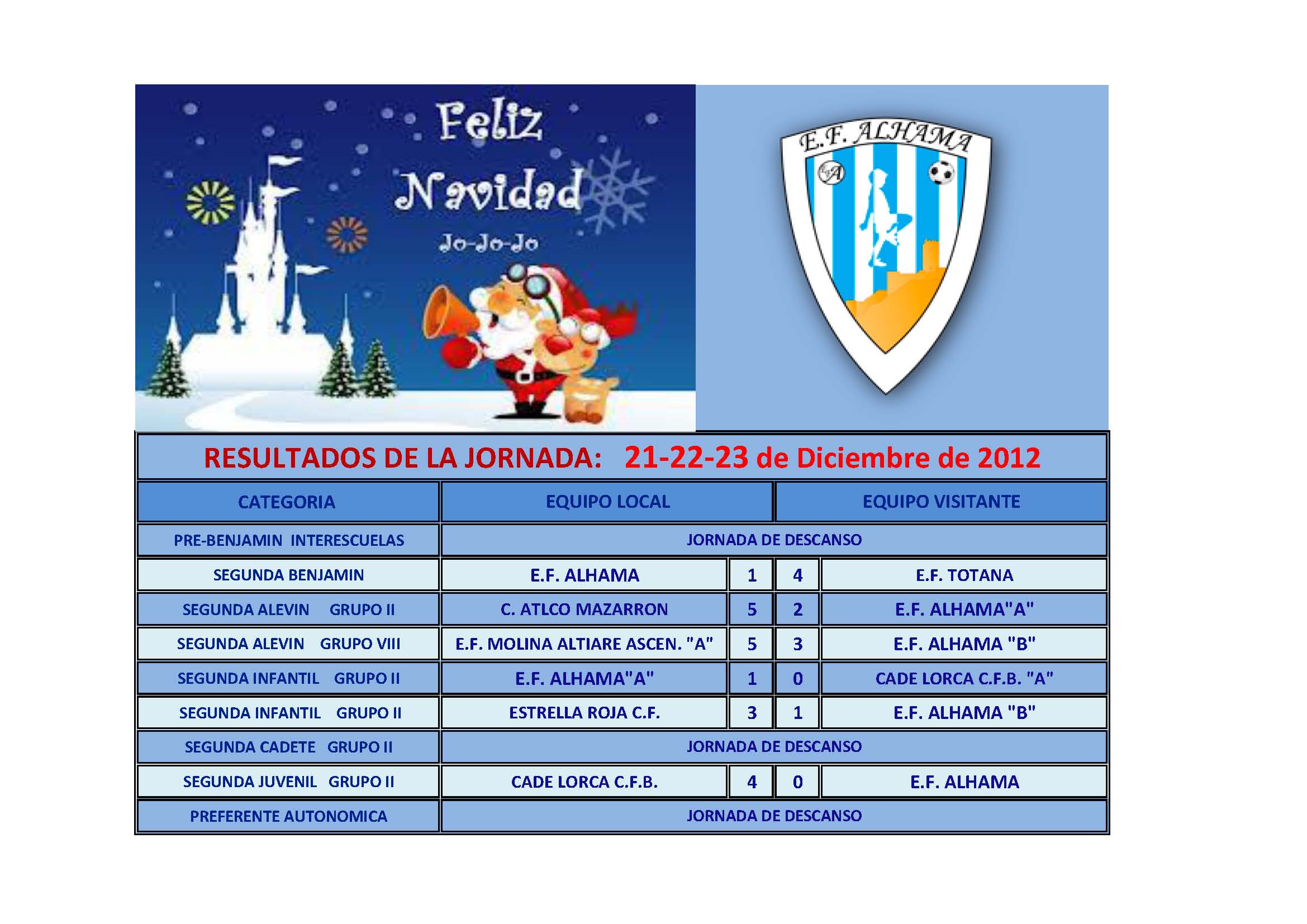 Imagen de entrada de blog: Resultados de la jornada 22 Diciembre 2012