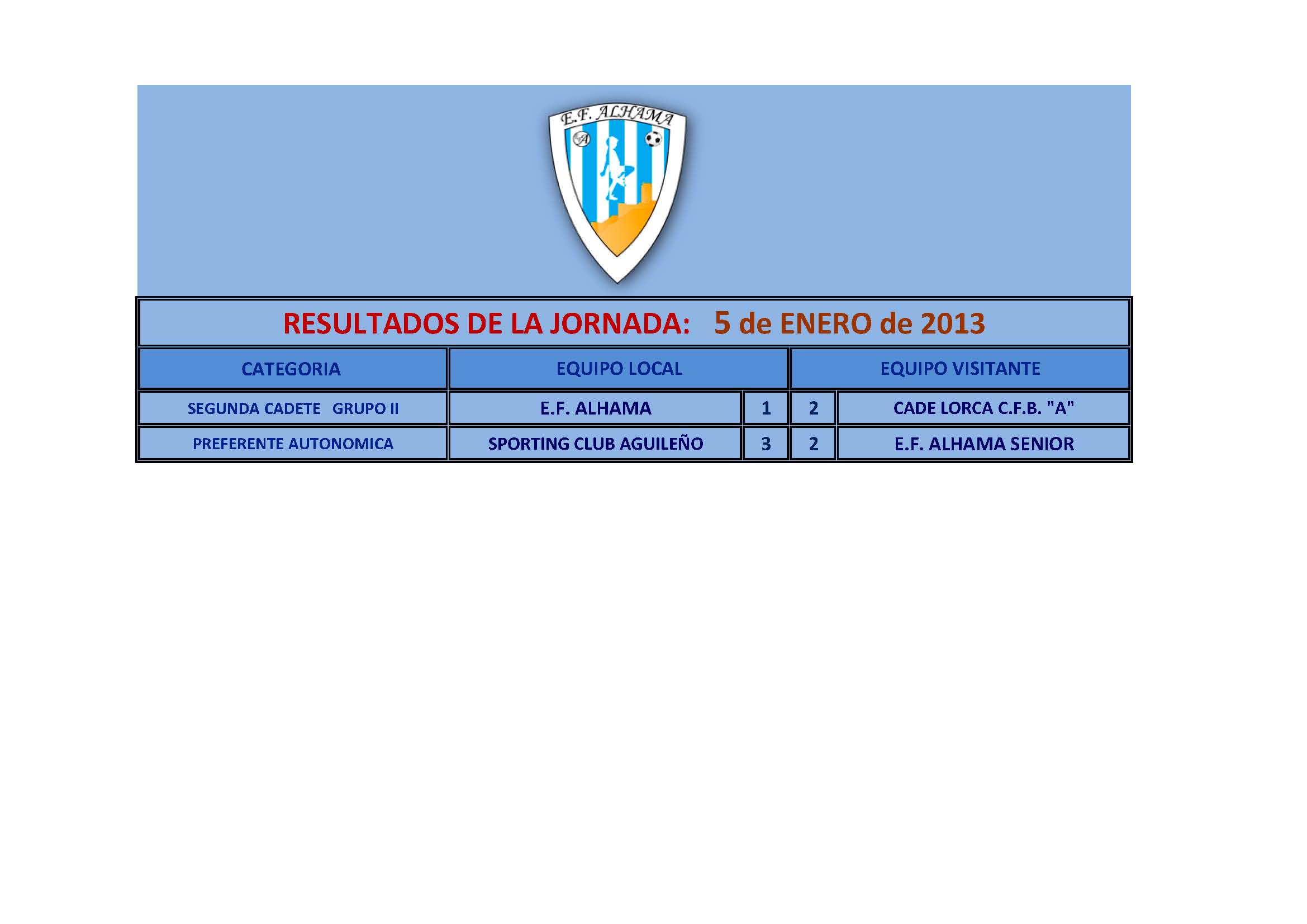 Resultados 5 Enero 2013