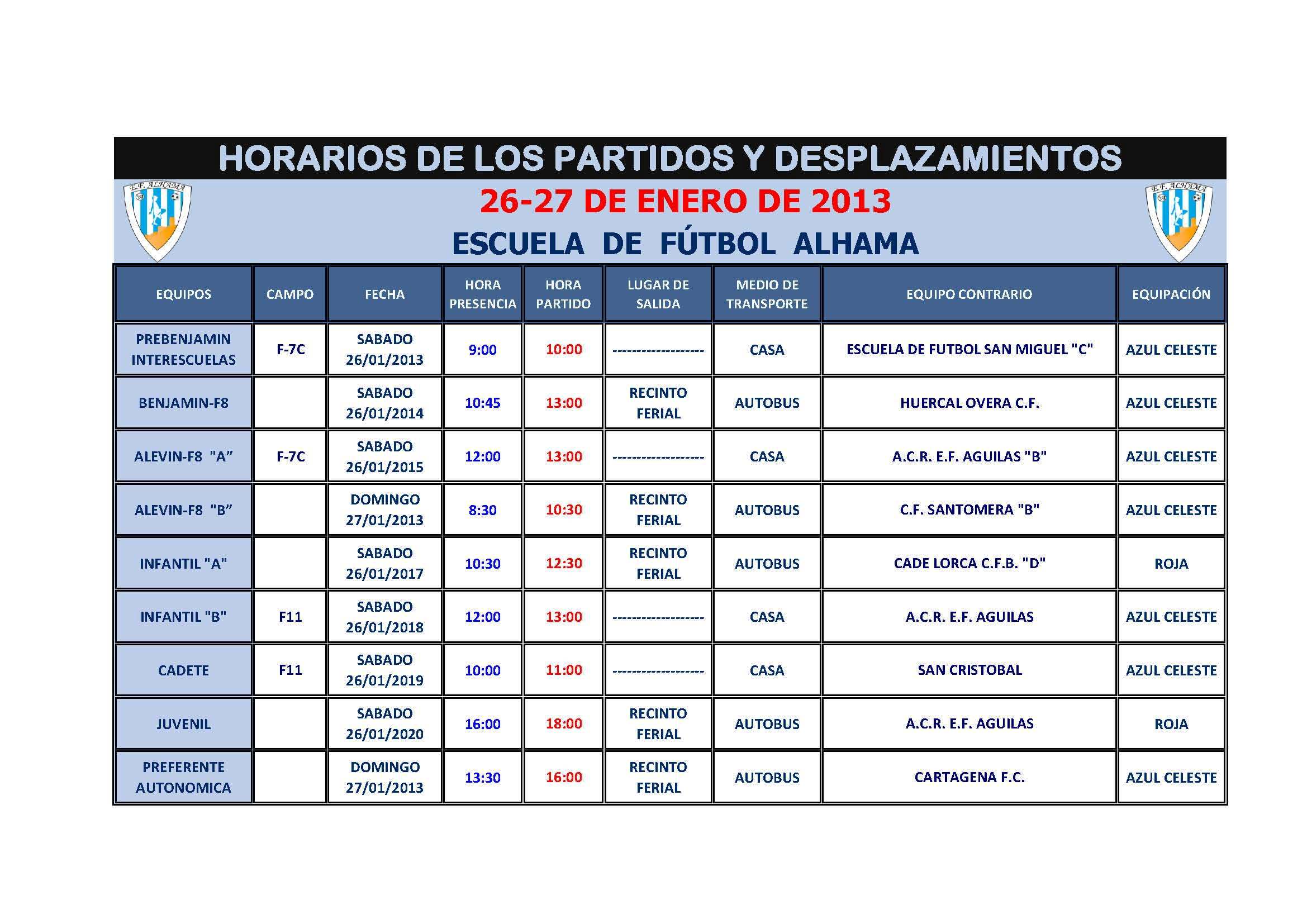 Horarios jornada 26-27 Enero 2013.