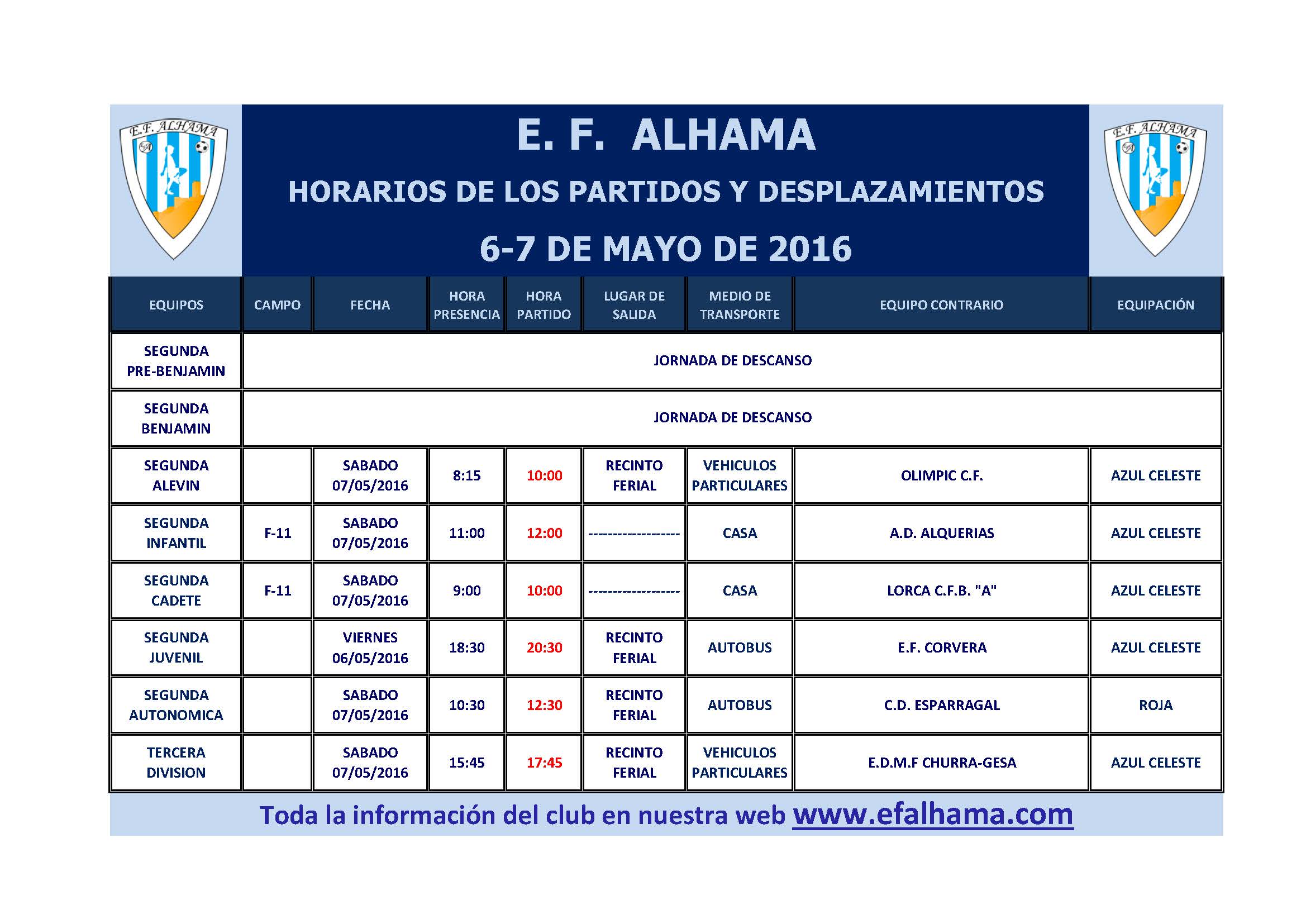 Horarios de los partidos de las jornadas de 6-7 de Mayo de 2016.
