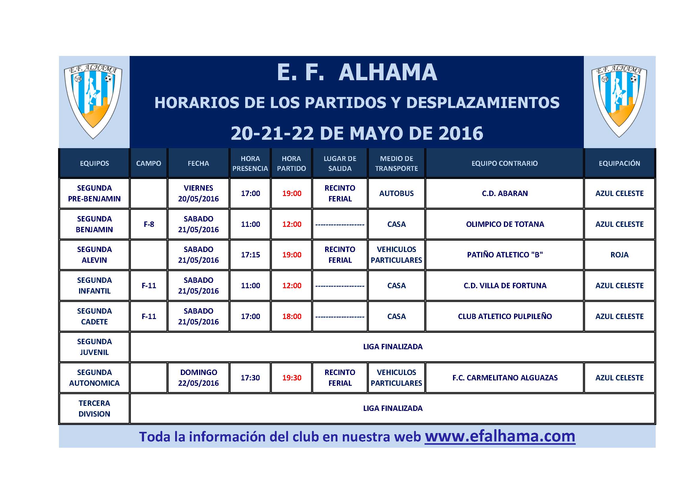 Horarios del fin de semana de 20-21-22 de mayo de 2016.