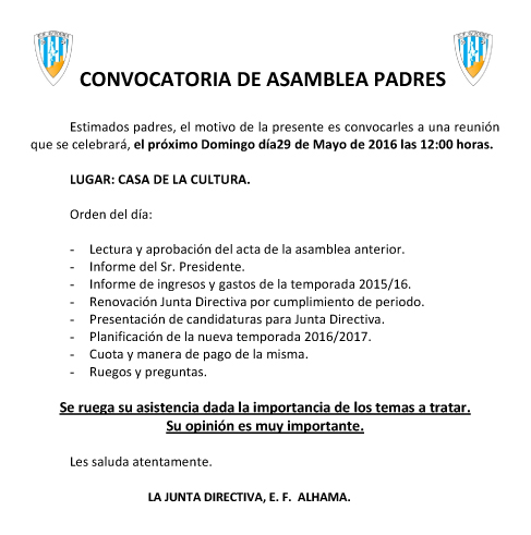 Convocatoria ASAMBLEA GENERAL DEL CLUB