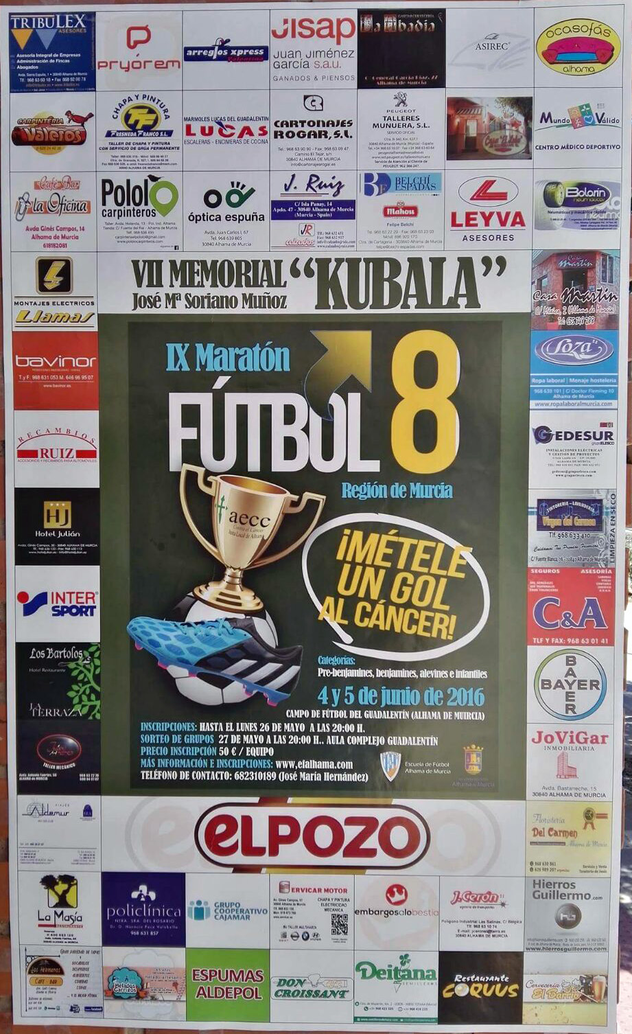 Un gran esfuerzo hemos hecho desde la E.F. ALHAMA y la Junta Local de la AECC para este Maratón de Fútbol 8; pero ha merecido la pena, aunque la recaudación hubiese sido mínima, es nuestro granito de arena para la GRAN LABOR que hace la Asociación Española Contra el Cáncer. Desde aquí queremos agradecer a los que han estado de nuestro lado ayudando y apoyándonos.