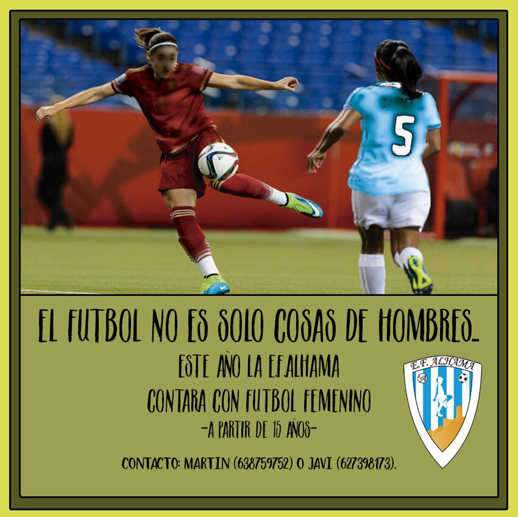 Por josegonzalez28 de junio de 2016Noticias Si te gusta jugar al FÚTBOL y eres una chica, ya puedes hacerlo en la E.F. ALHAMA. ¡VEN A PROBAR! Con la Escuela, todos y todas JUGAMOS.