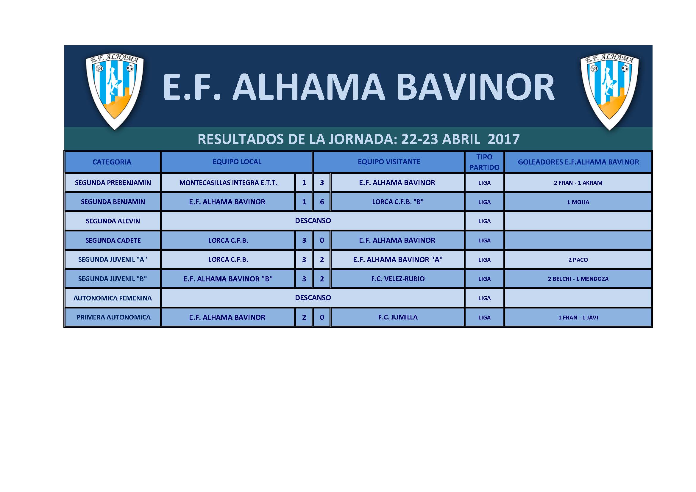 C.D. BALA AZUL 5 – E.F.ALHAMA BAVINOR A 230 de abril de 2017 – Jornada 25ª Estadio Playasol de Puerto de Mazarrón
