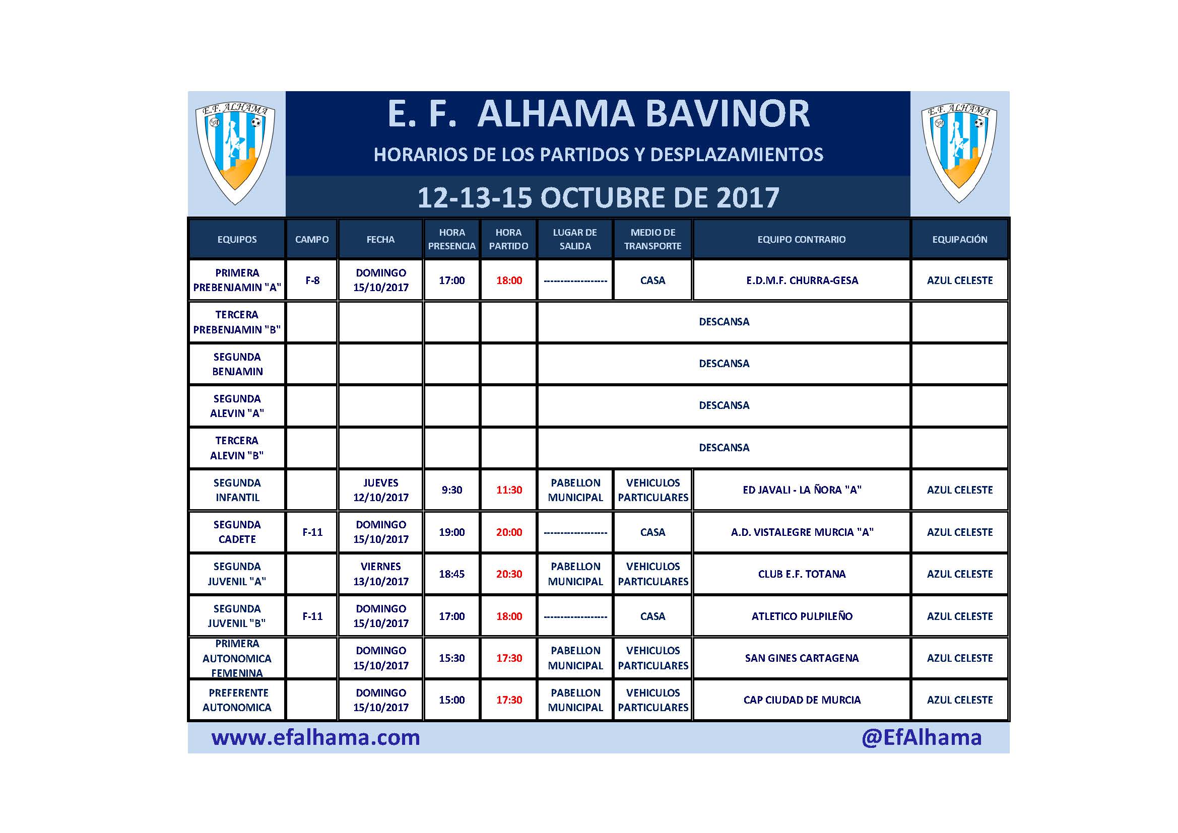 E.F. ALHAMA BAVINOR B 2 – ATLÉTICO PULPILEÑO 215 de octubre de 2017 – Jornada 3ª Campo Municipal de Fútbol «José Kubala» de Alhama de Murcia
