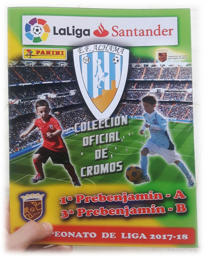 Ya tienen nuestros equipos Prebenjamines, de la Escuela de Fútbol Alhama Bavinor, su álbum de la Liga 2017-2018, en el que pueden poner sus cromos para completar la colección, cromos compuestos por sus propias imágenes y jugadas.