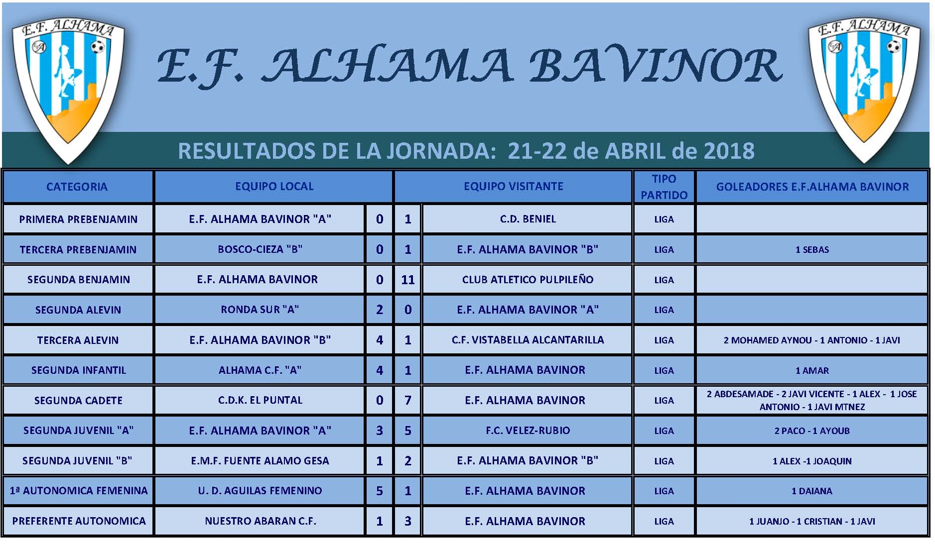 HORARIOS DE LOS PARTIDOS DE 27-28-29 ABRIL 2018.
