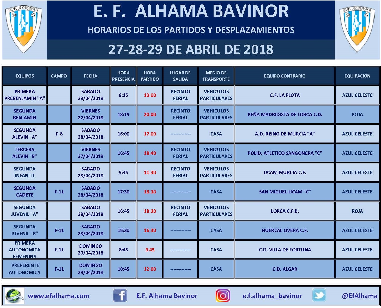 HORARIOS DE LOS PARTIDOS DE 27-28-29 ABRIL 2018.