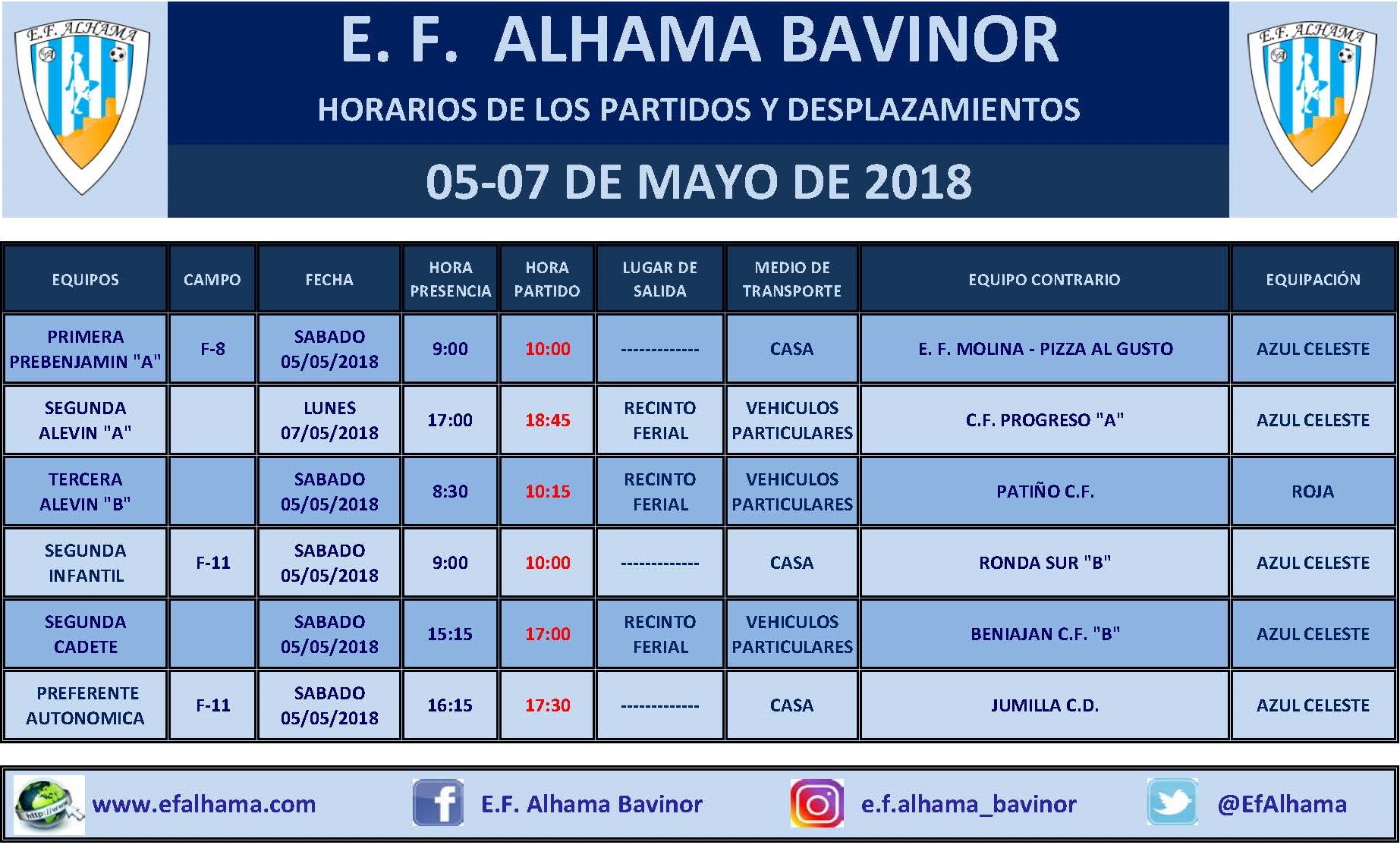HORARIOS DE LA JORNADA DEL 5-7 DE MAYO DE 2018.