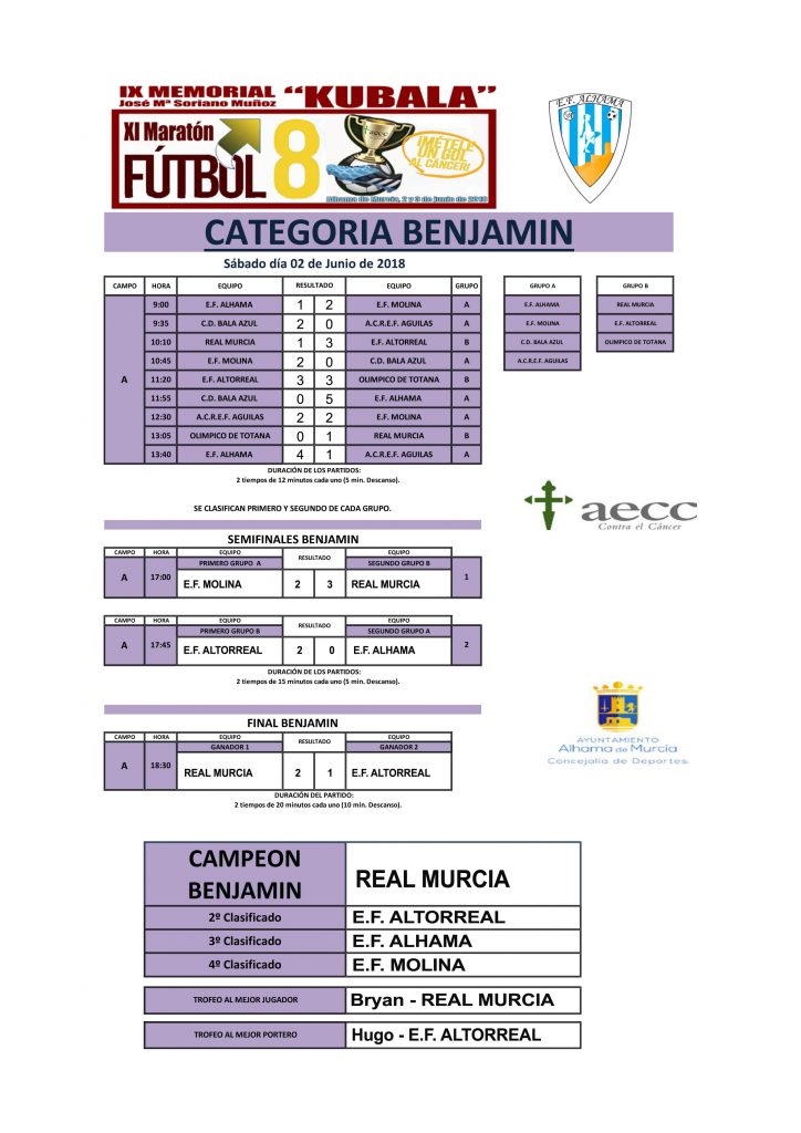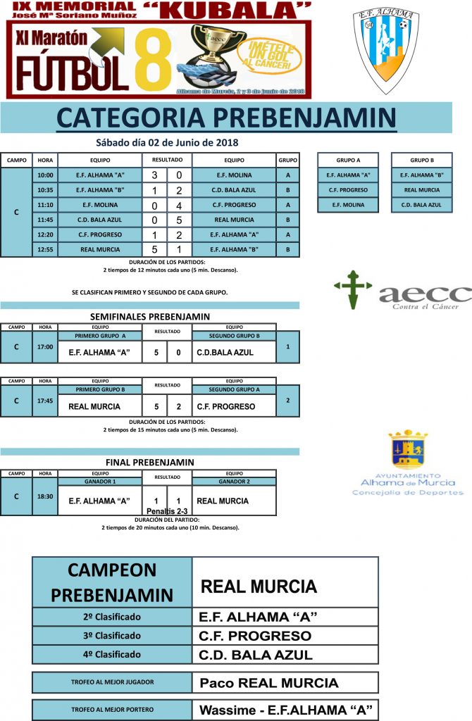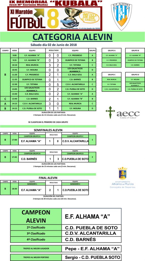RESULTADOS y FOTOS del sábado 2 junio. XI Maratón de Fútbol 8 «Métele un gol al cáncer». IX Memorial Kubala