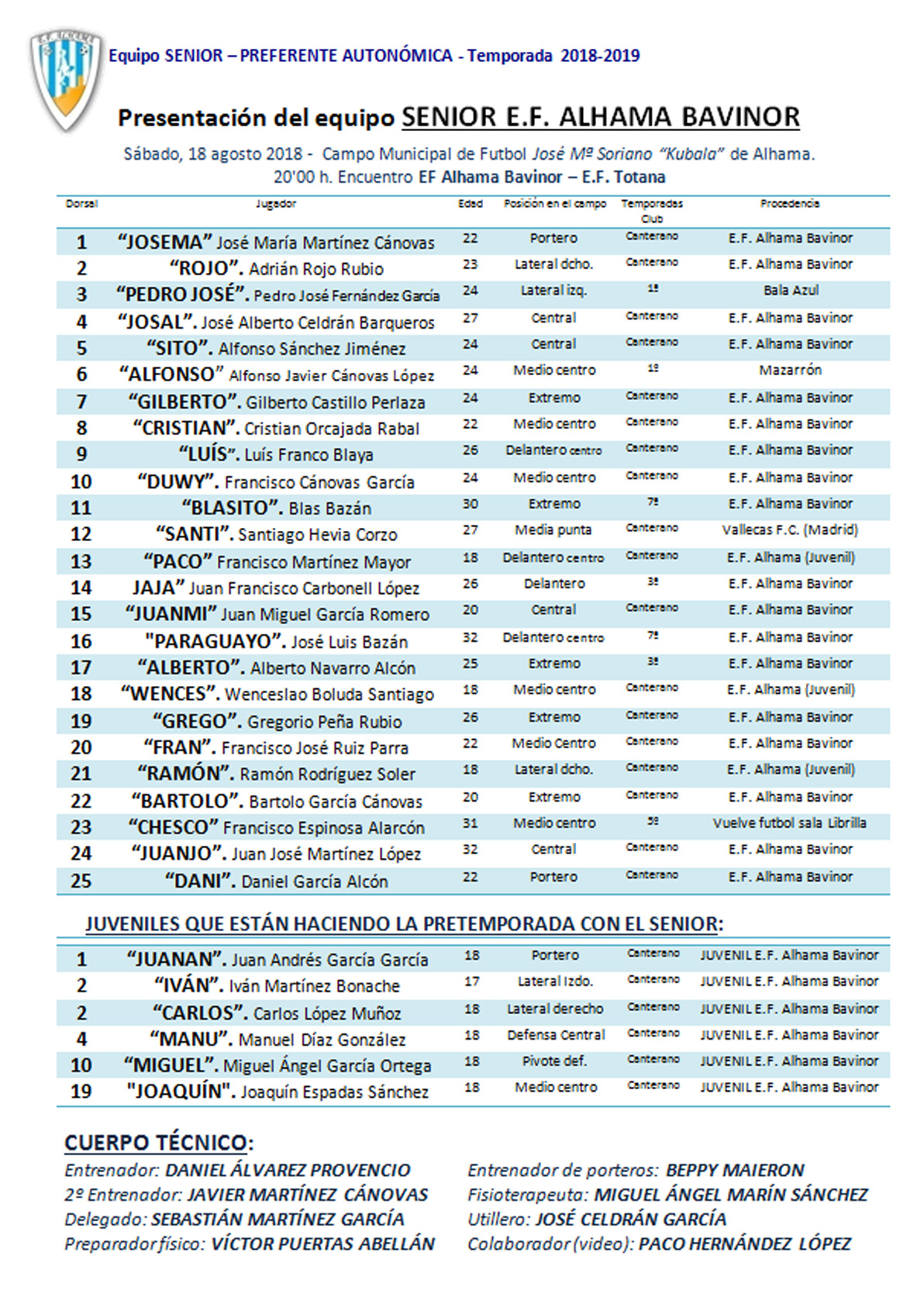 Publicada 19 de agosto de 2018 a las 1192 × 1664 en Presentación de nuestro equipo SENIOR de Preferente 2018-2019
