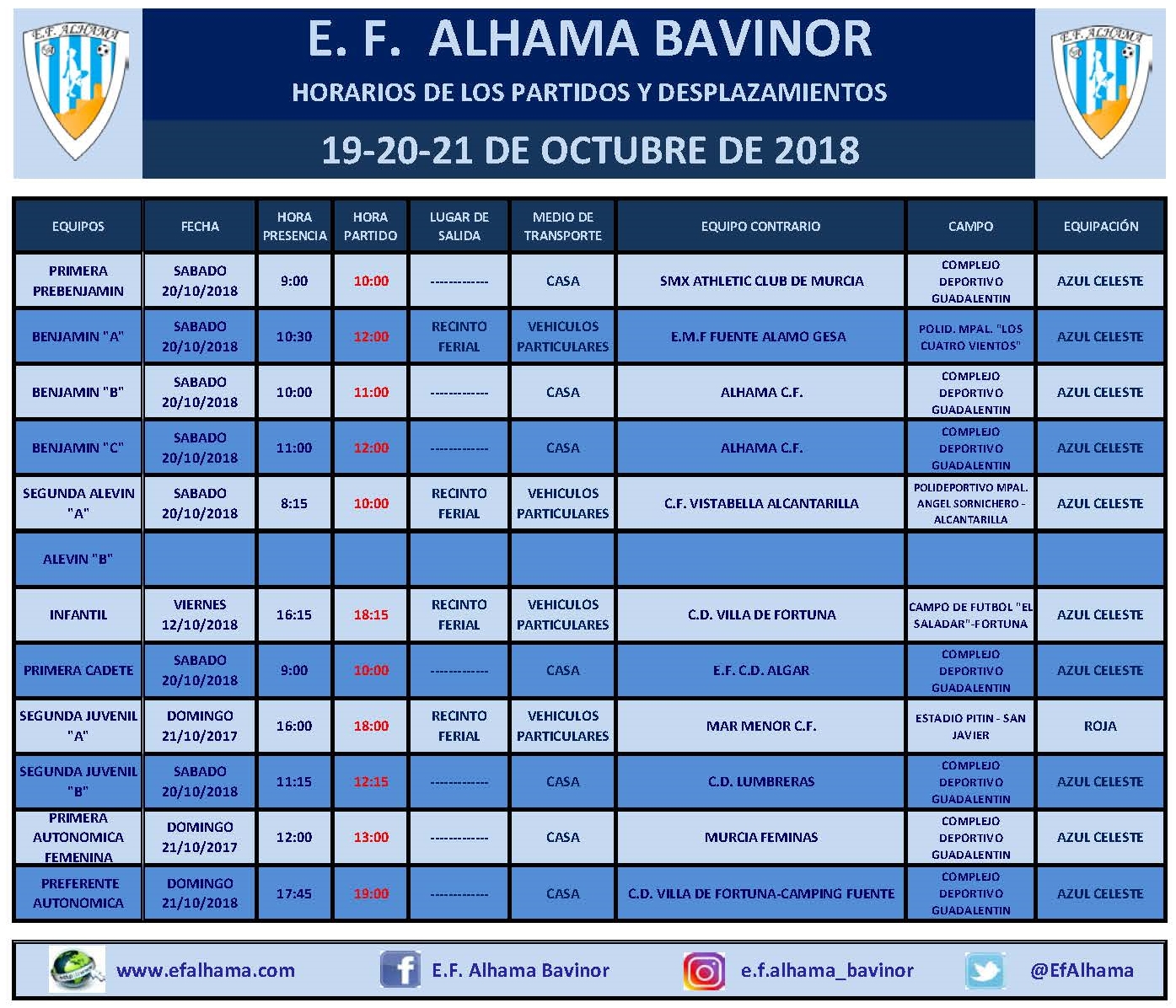 Horarios del fin de semana de 19-20-21 de Octubre de 2018.