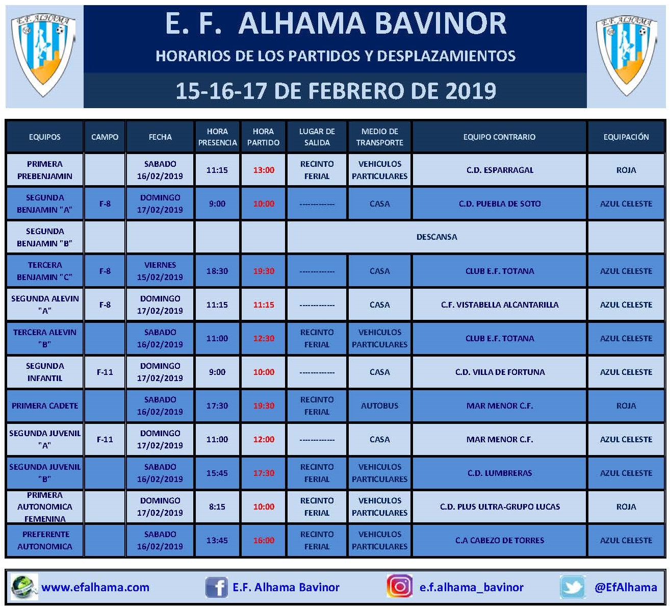 Horarios de los partidos y desplazamientos de la jornada del 17/02/2019.