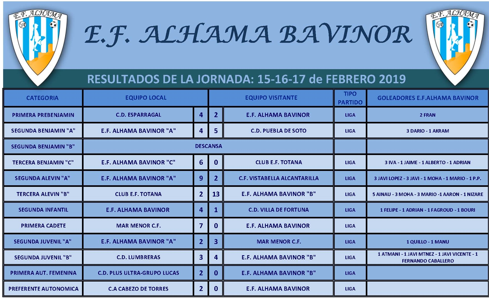 Resultados de los partidos de la jornada de 17 Febrero 2019.
