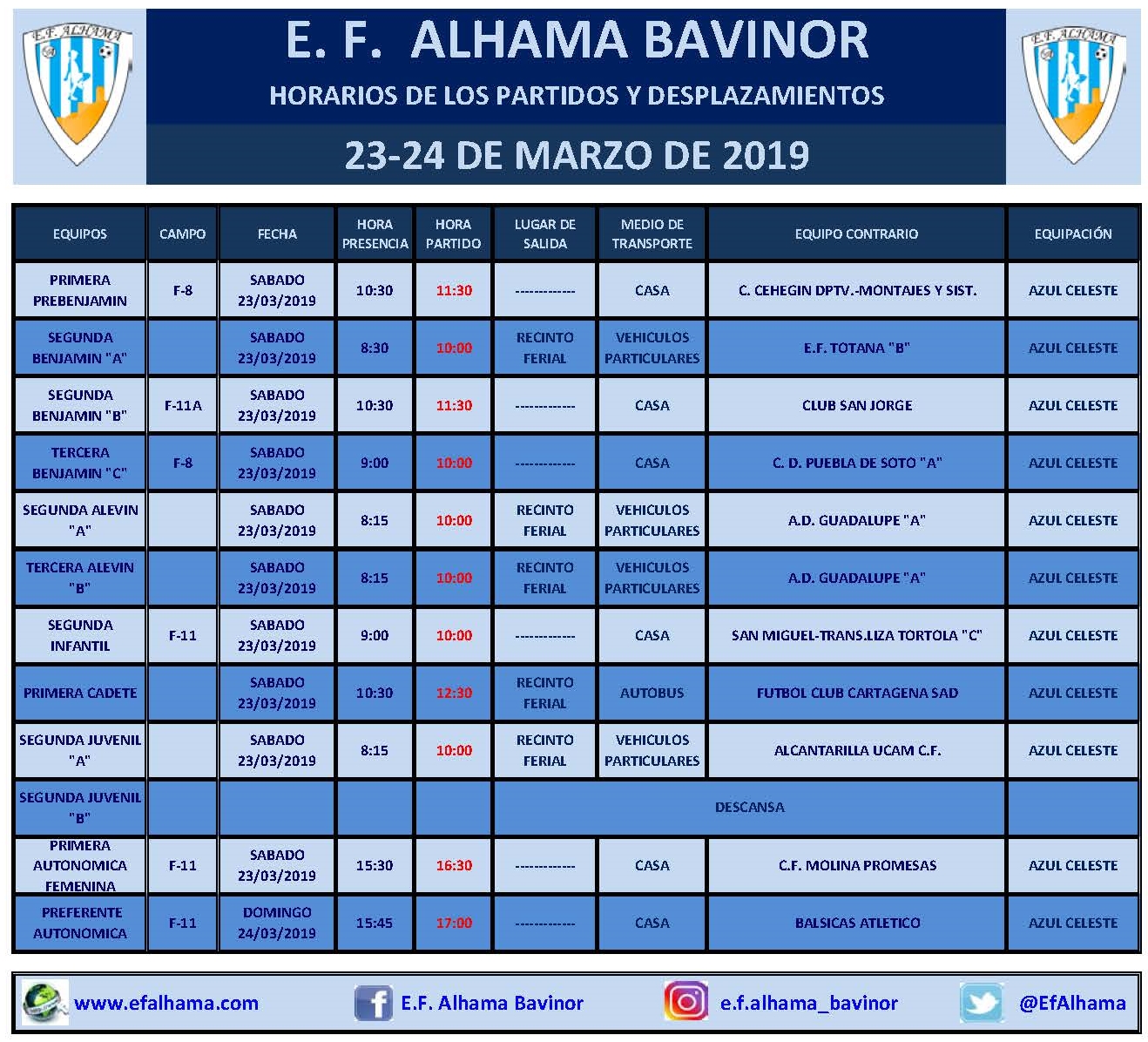 Página de Inicio/ Horarios de los partidos y desplazamientos de 23-24 de marzo de 2019.
