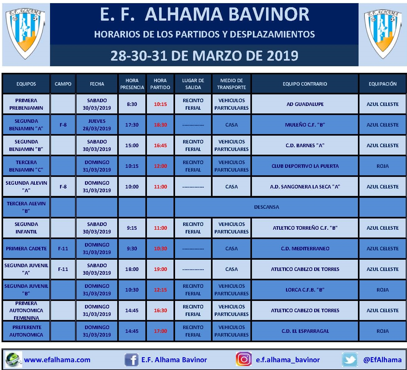 Horarios de los partidos del 28-30-31 de marzo de 2019.