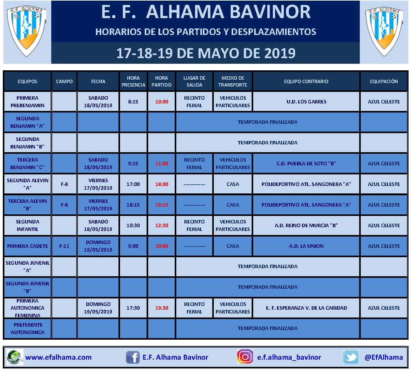 Horarios de los partidos de la jornada del 19 de mayo de 2019.