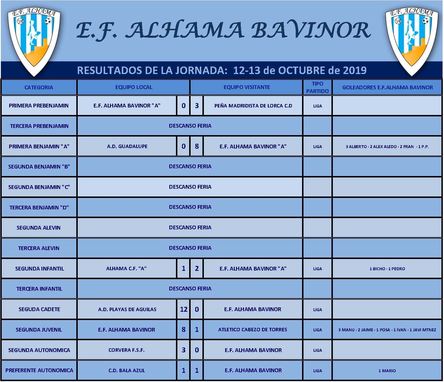 Resultados de la jornada del 12-13 de 0ctubre de 2019.