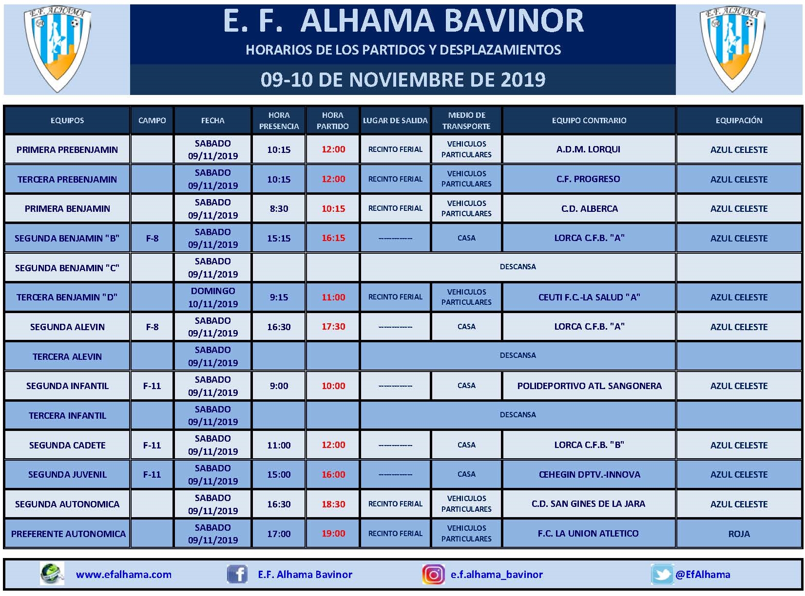Horarios de los partidos del fin de semana de 9-10 de noviembre de 2019.