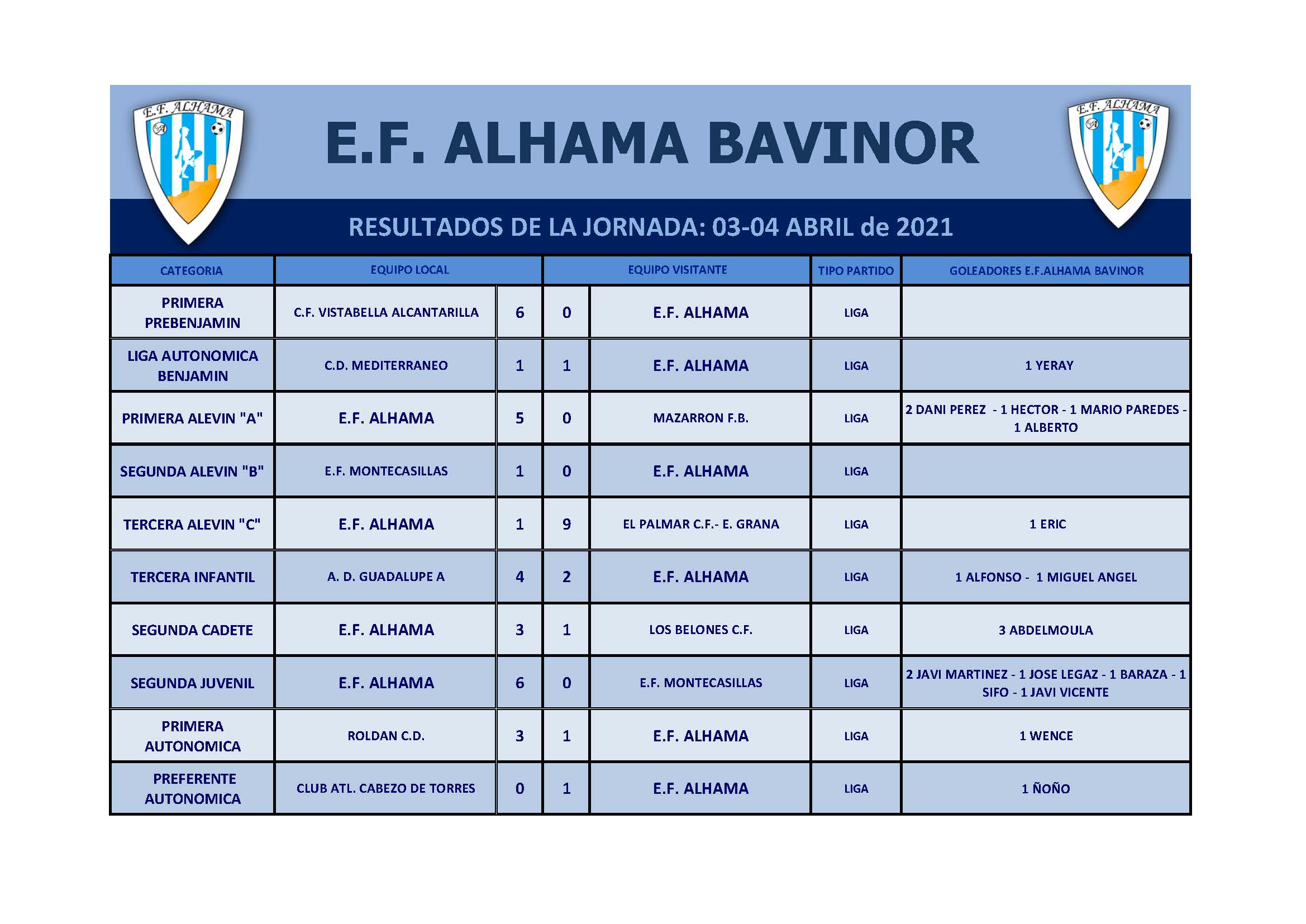 CUADRANTE PARTIDOS DE LA JORNADA DEL 11 ABRIL 2021