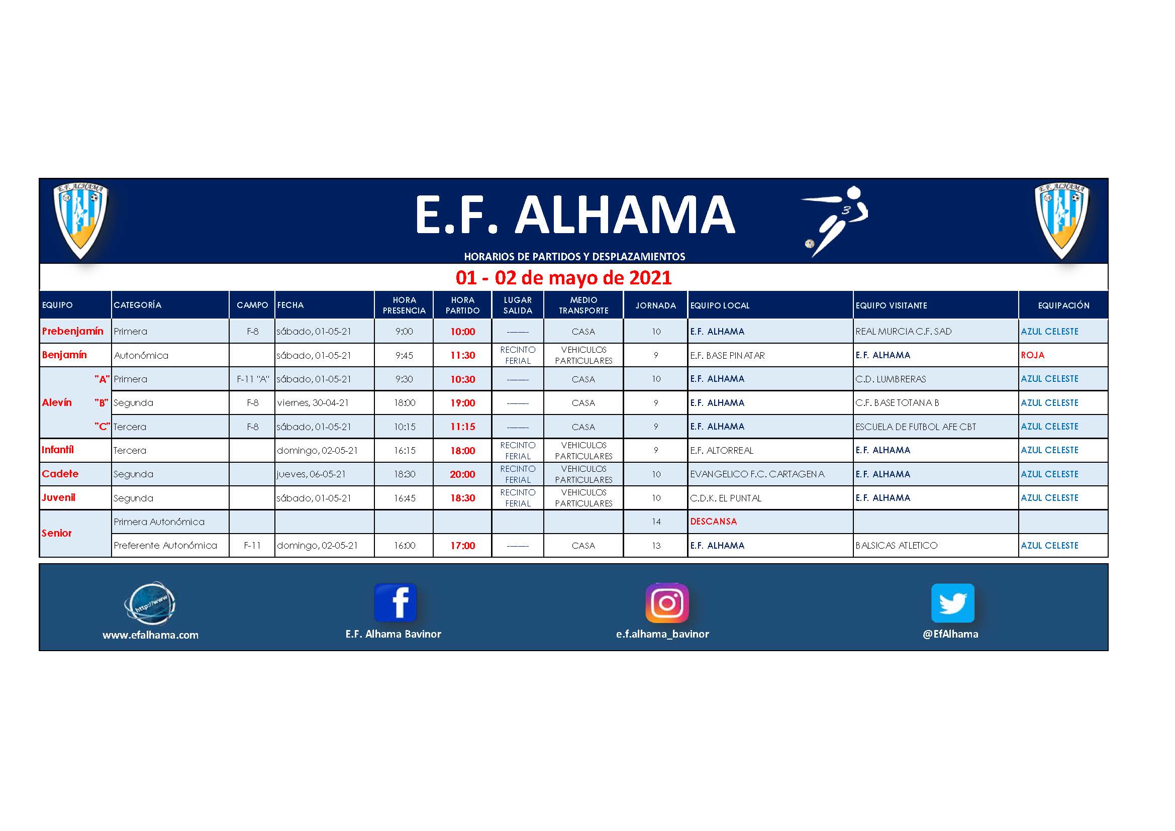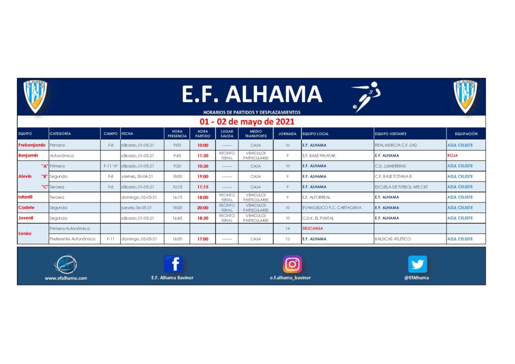 CUADRANTE DE PARTIDOS DE LA JORNADA DE 2 DE MAYO DE 2021
