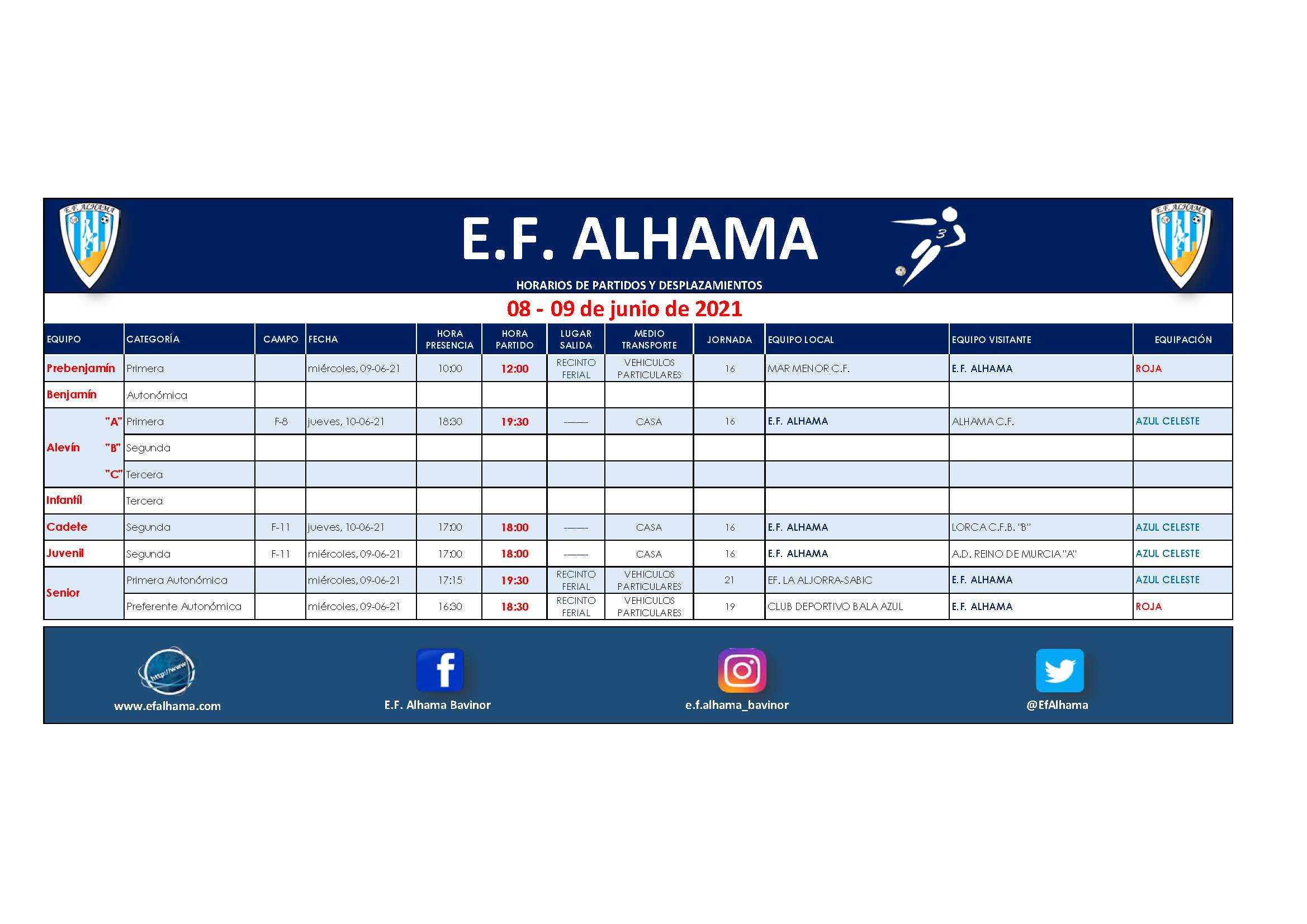CUADRANTE PARTIDOS JORNADA DEL 9 JUNO 2021