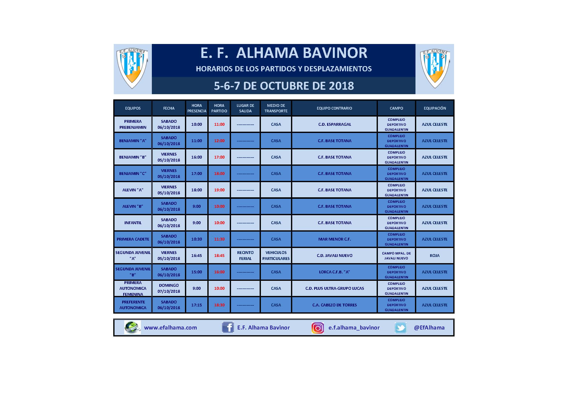 Horarios de los partidos del fin de semana de 5-6-7 de Octubre de 2018. Por Redacción2 de octubre de 2018Horarios de los partidos