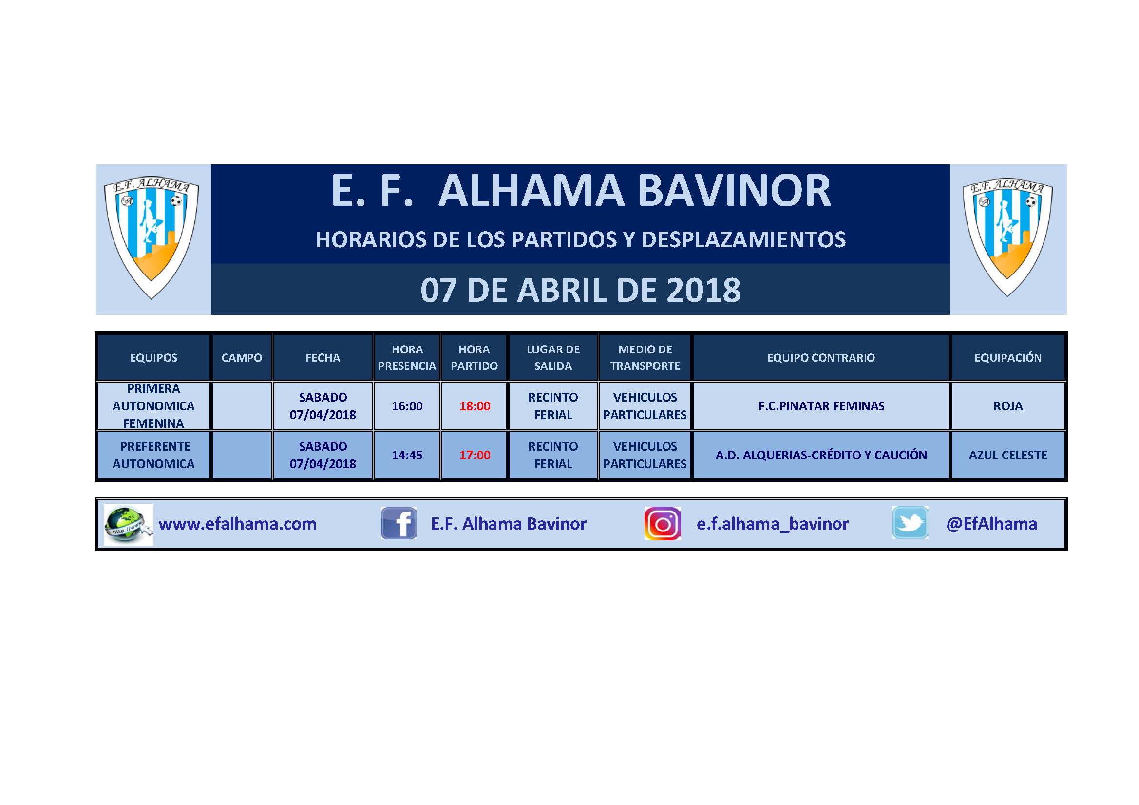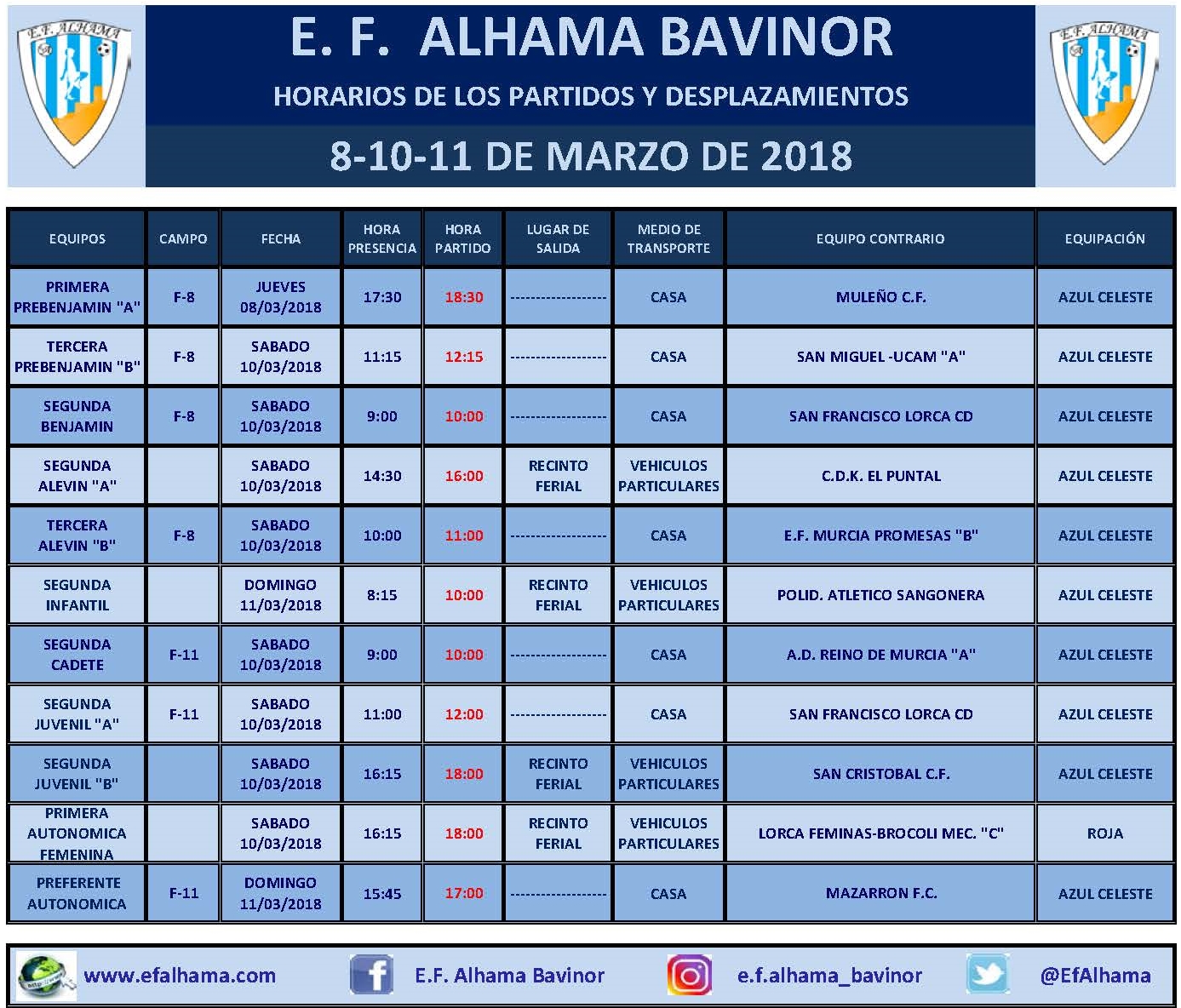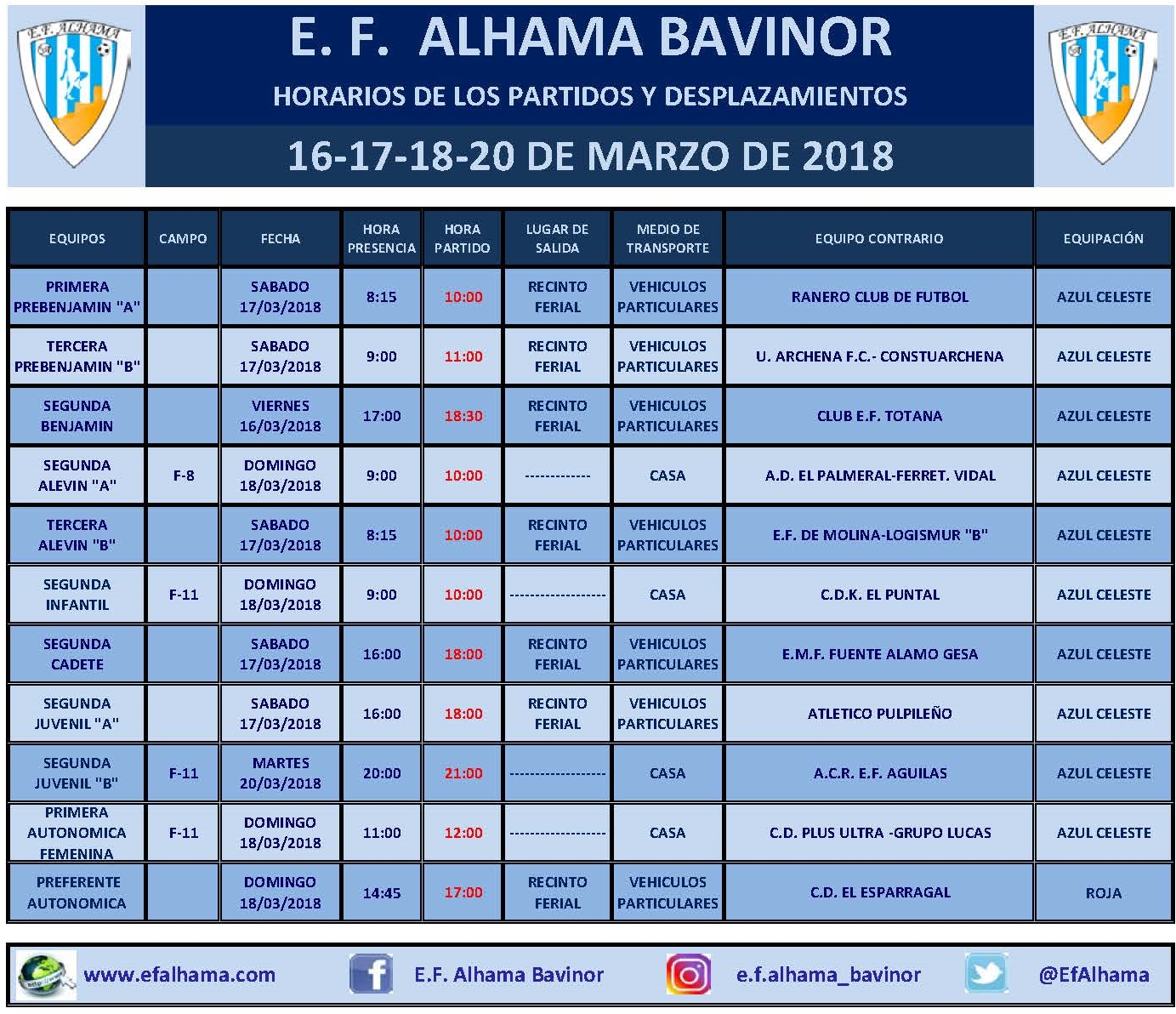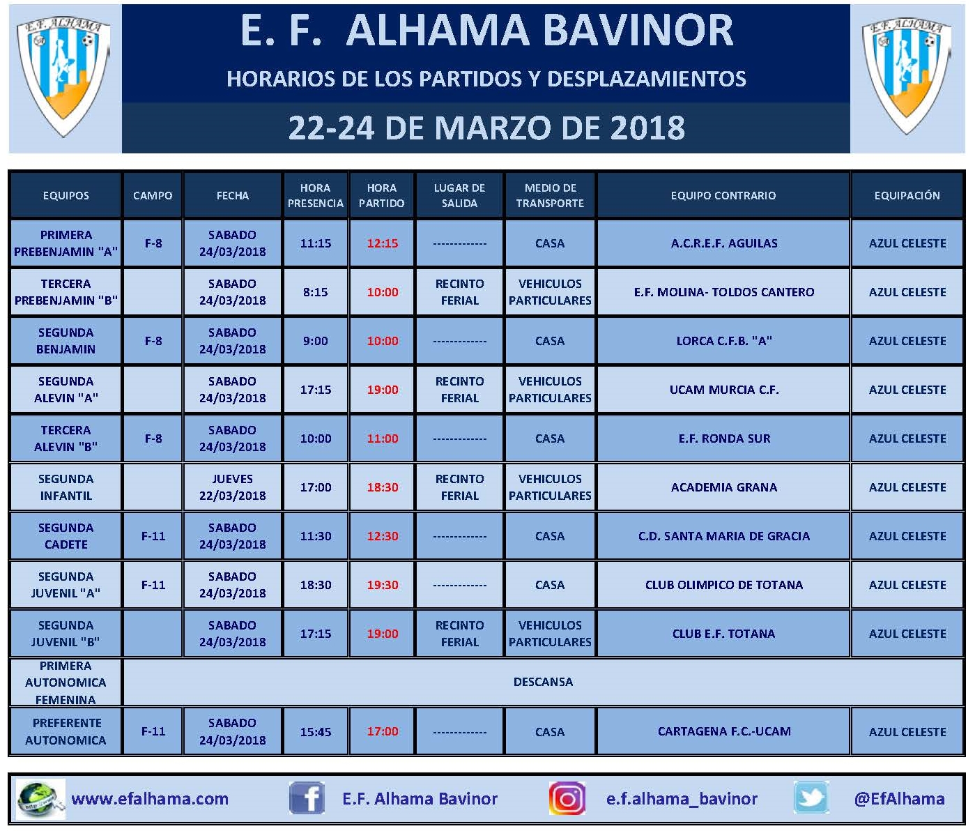 HORARIOS DE LOS PARTIDOS Y DESPLAZAMIENTOS. Por Redacción22 de marzo de 2018Horarios de los partidos, Noticias