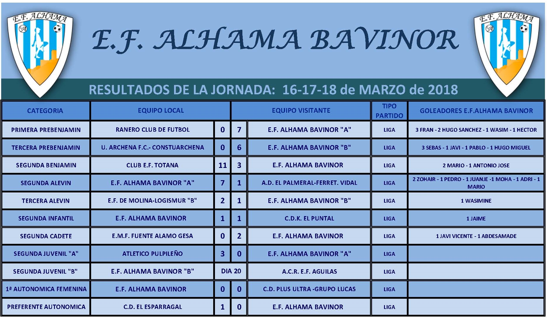 RESULTADOS DE LA JORNADA 18 MARZO 2018 Por Redacción18 de marzo de 2018Noticias, Resultados de los partidos