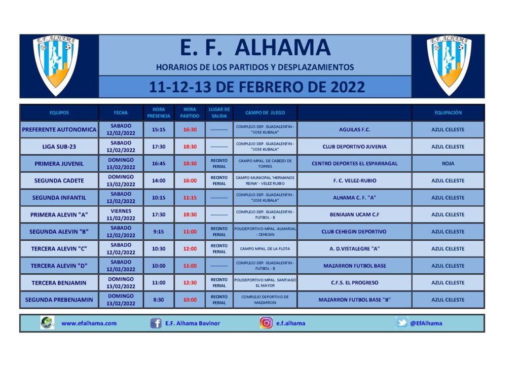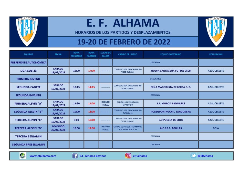 Horarios de los partidos y desplazamientos del 19/20 de febrero de 2022 Por Redacción16 de febrero de 2022Noticias HORARIOSDescarga