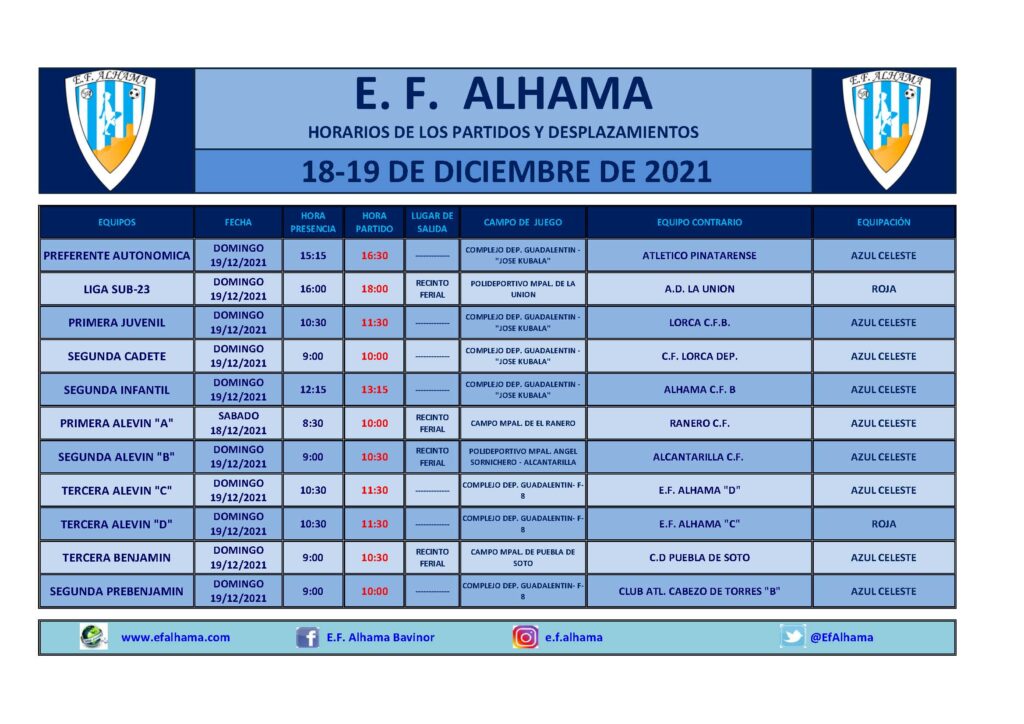 CUADRANTE DE PARTIDOS 18-19 DICIEMBRE 2021 Por Redacción15 de diciembre de 2021Noticias HORARIOSDescarga