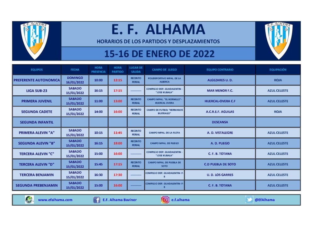 CUADRANTE DE PARTIDOS DEL 15-16 DE ENERO DE 2022 Por Redacción11 de enero de 2022Noticias HORARIOSDescarga