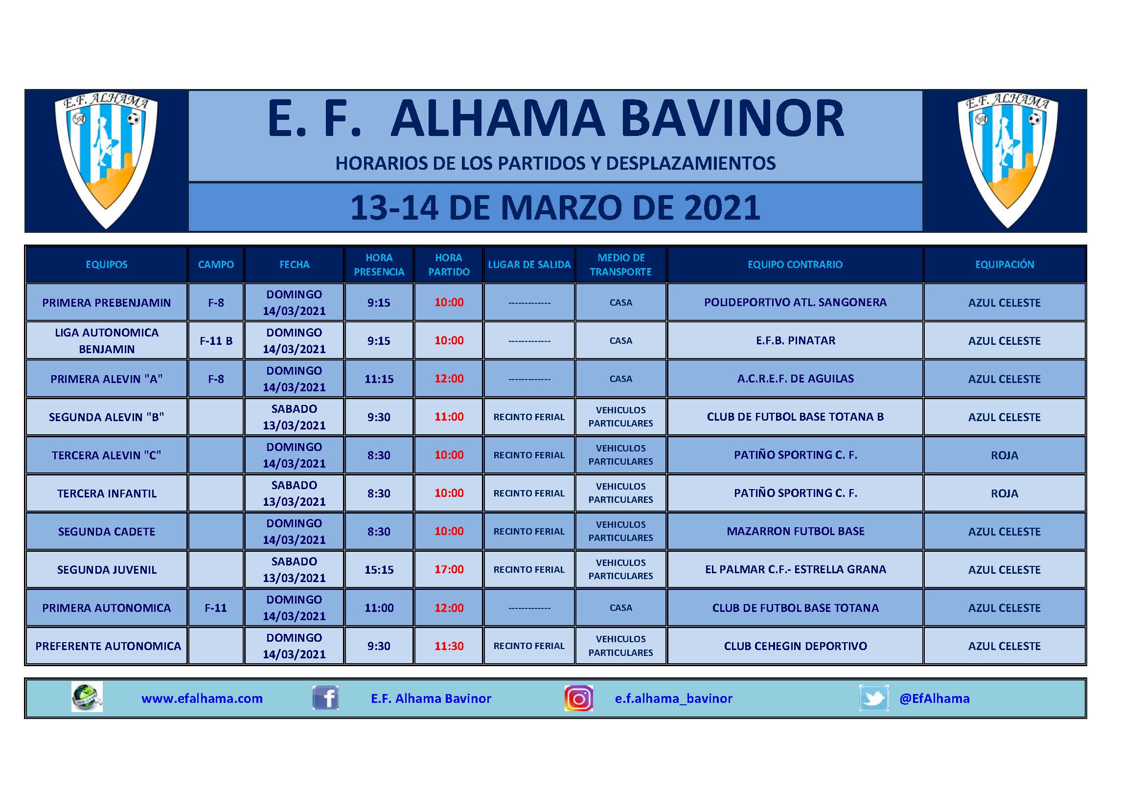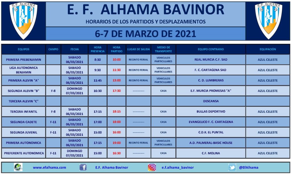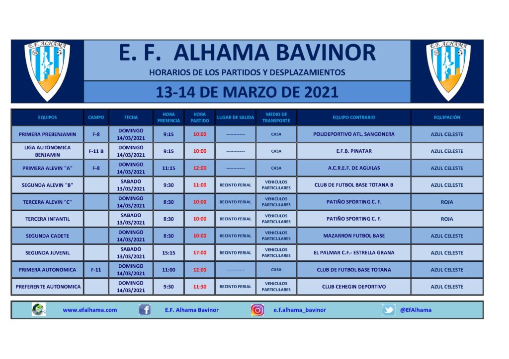 HORARIOS DE LOS PARTIDOS DE LA JORNADA 13/14 DE MARZO DE 2021 Por Redacción10 de marzo de 2021Noticias HORARIOS PDF-2Descarga