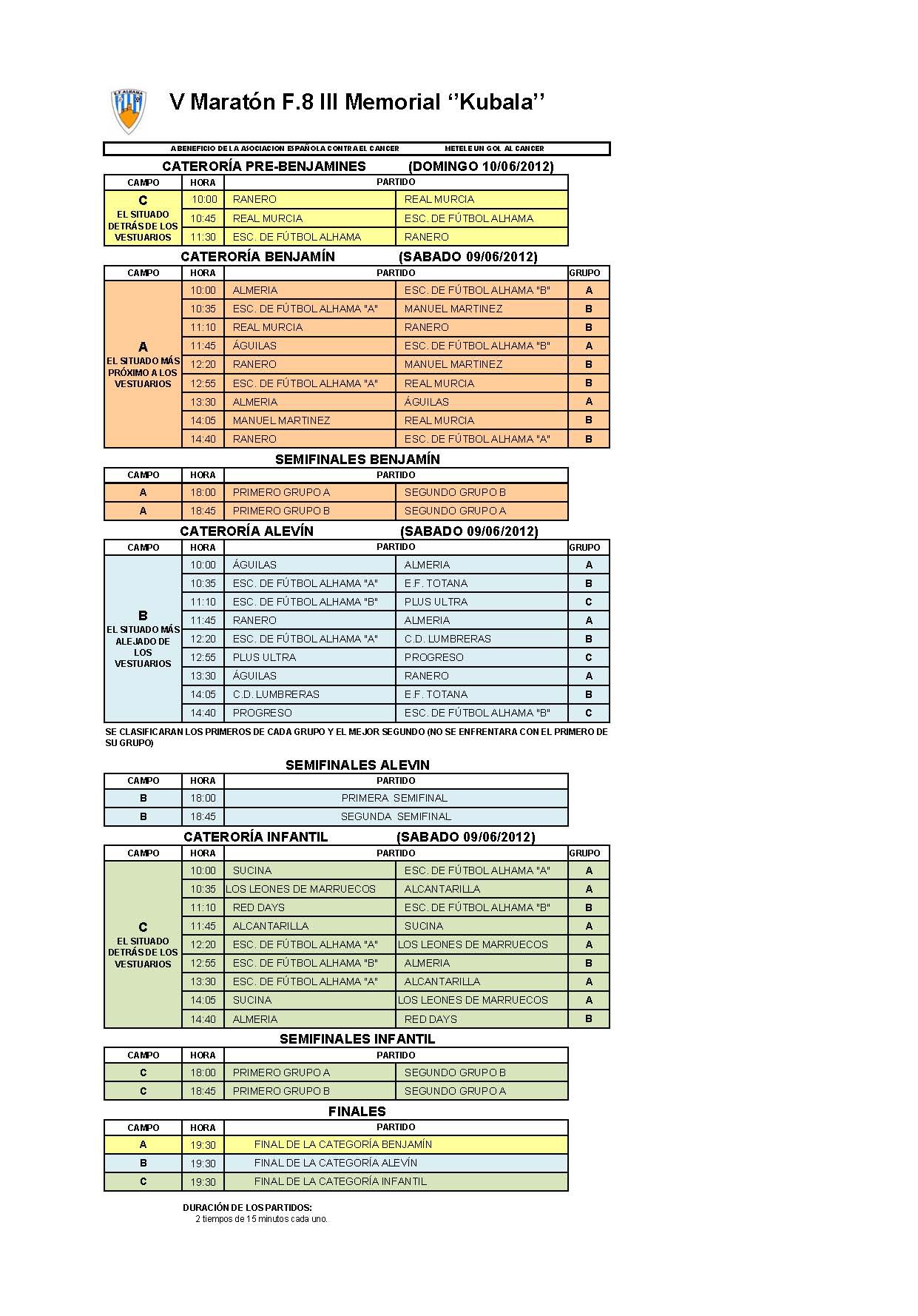 CALENDARIO V Maratón F.8 III Memorial Kubala