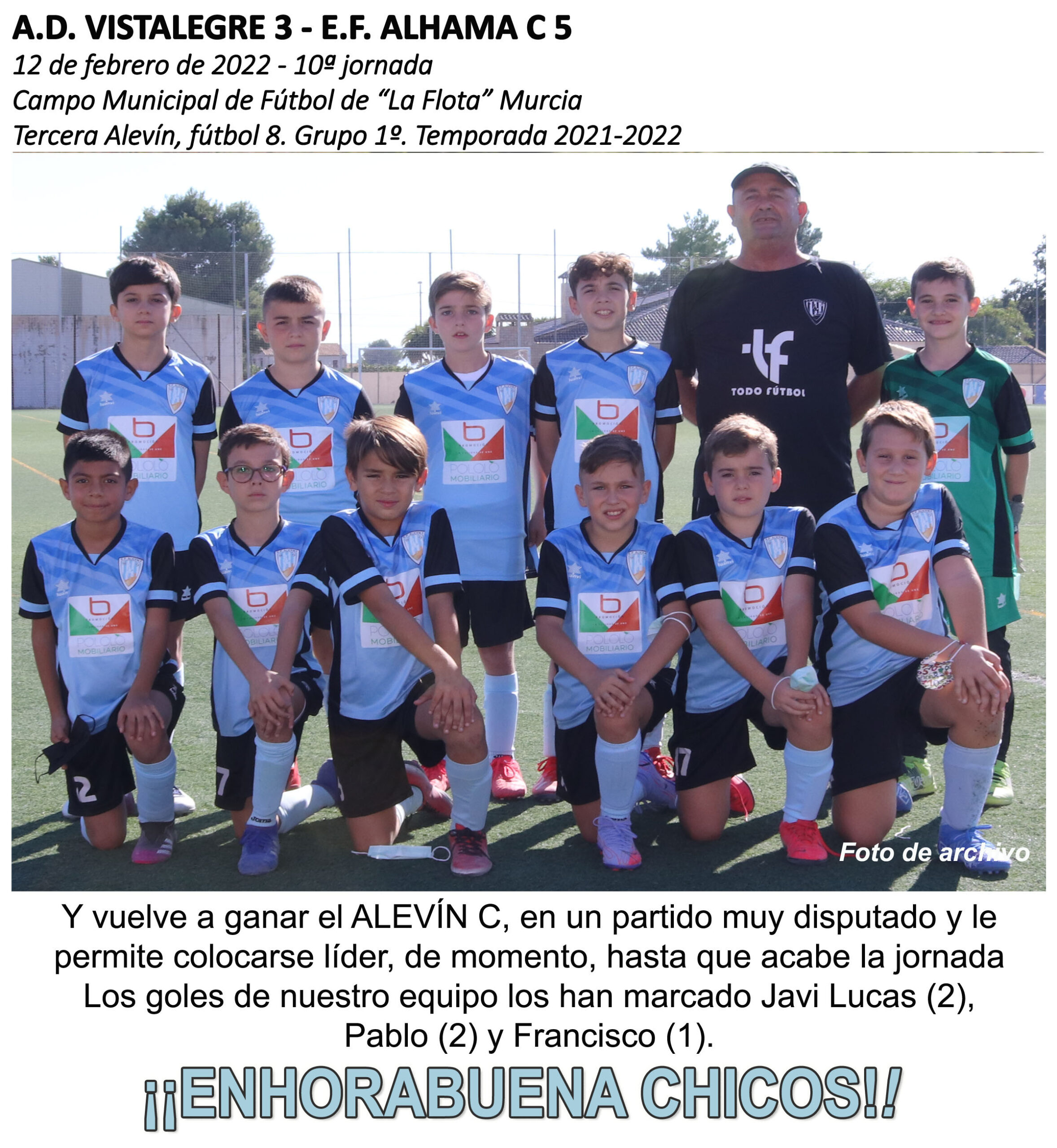 El ALEVÍN D consigue de nuevo una gran VICTORIA Por josegonzalez12 de febrero de 2022Crónicas, Fotos, Noticias En este ENLACE las fotos del partido: https://photos.app.goo.gl/n1NNPMmbiPaM7hdM8
