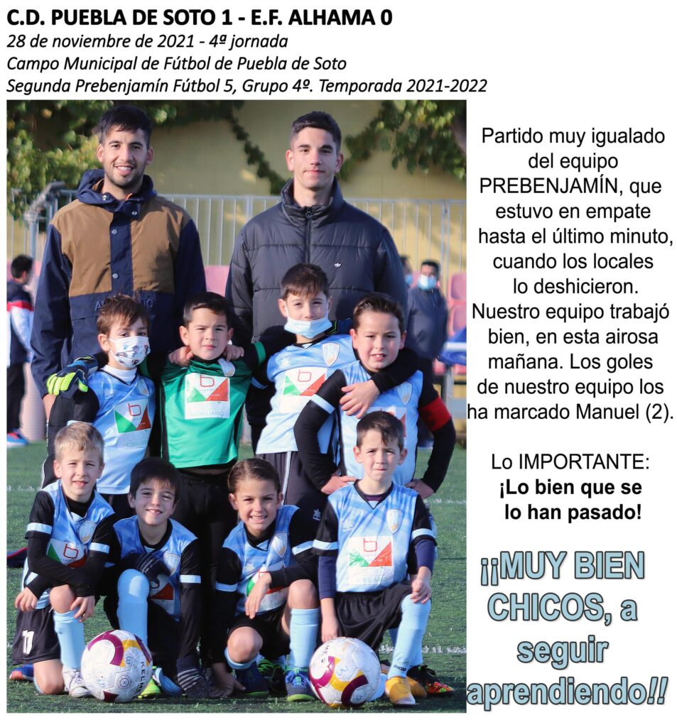 El PREBENJAMÍN juega en Puebla de Soto Por josegonzalez28 de noviembre de 2021Crónicas, Fotos, Noticias En estos DOS ENLACES las fotos del partido: https://photos.app.goo.gl/aBojSHRo4DA8ra74A https://photos.app.goo.gl/d4WaBQacTLW4DbCf9