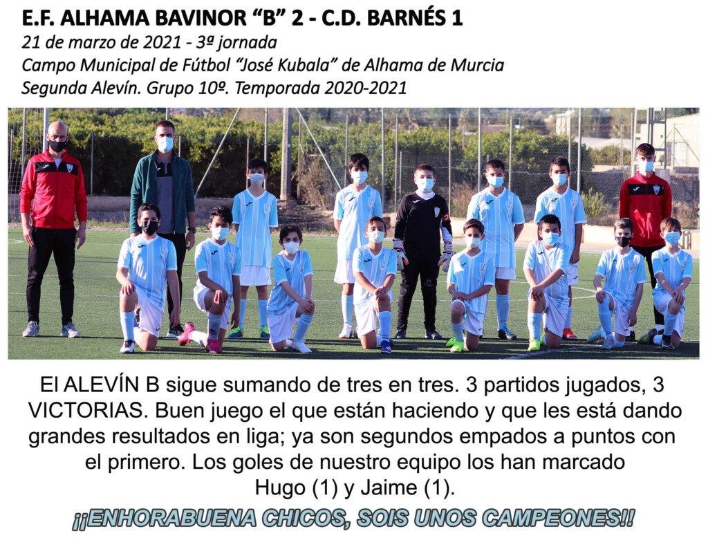 3 de 3, VICTORIAS del ALEVÍN B en liga Por josegonzalez21 de marzo de 2021Crónicas, Fotos, Noticias En este enlace podéis ver las fotos del partido: https://photos.app.goo.gl/vSqnJ4Jt1NYdDJre6