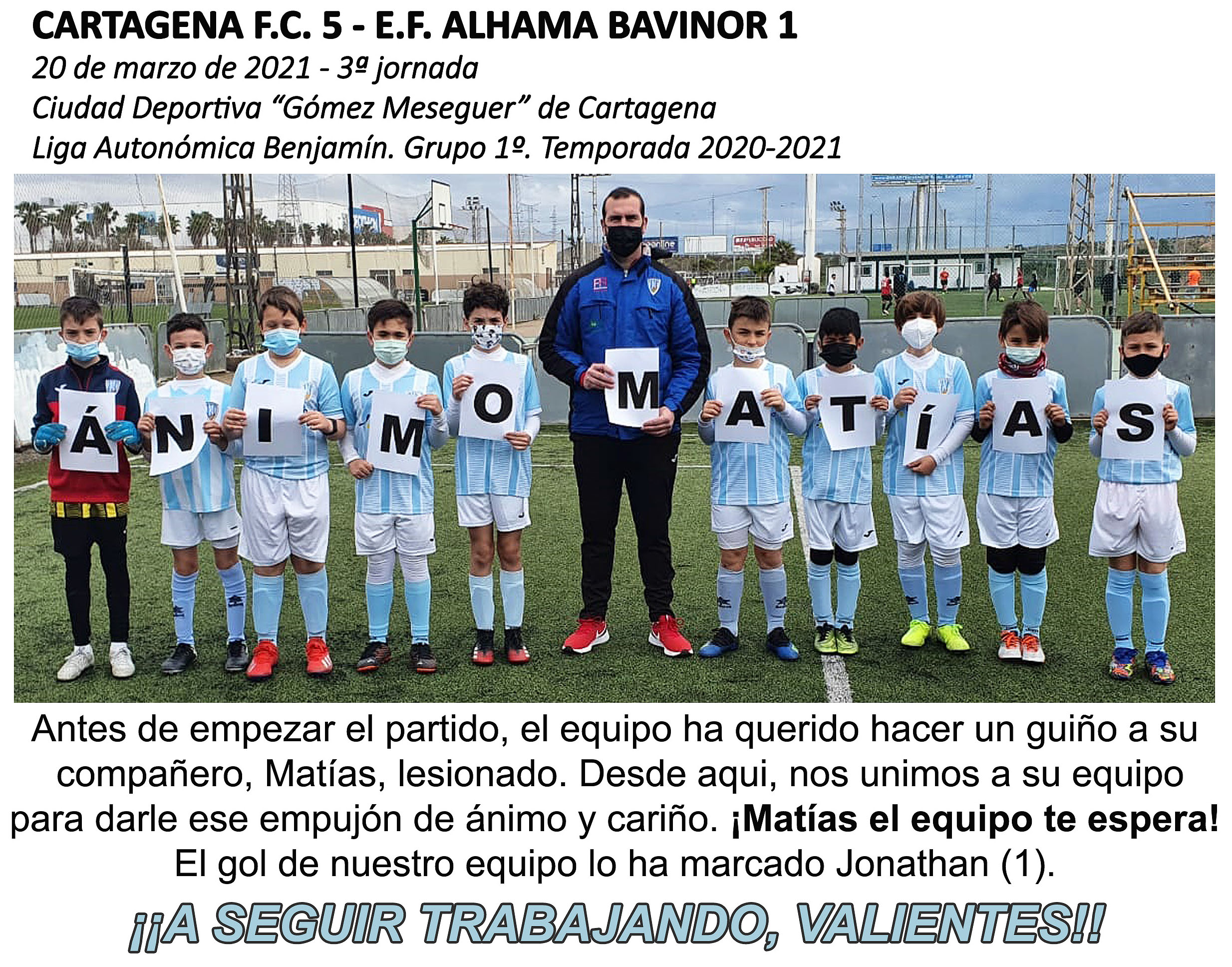 El BENJAMÍN anima a Matías a que vuelva pronto con el equipo Por josegonzalez20 de marzo de 2021Crónicas, Noticias