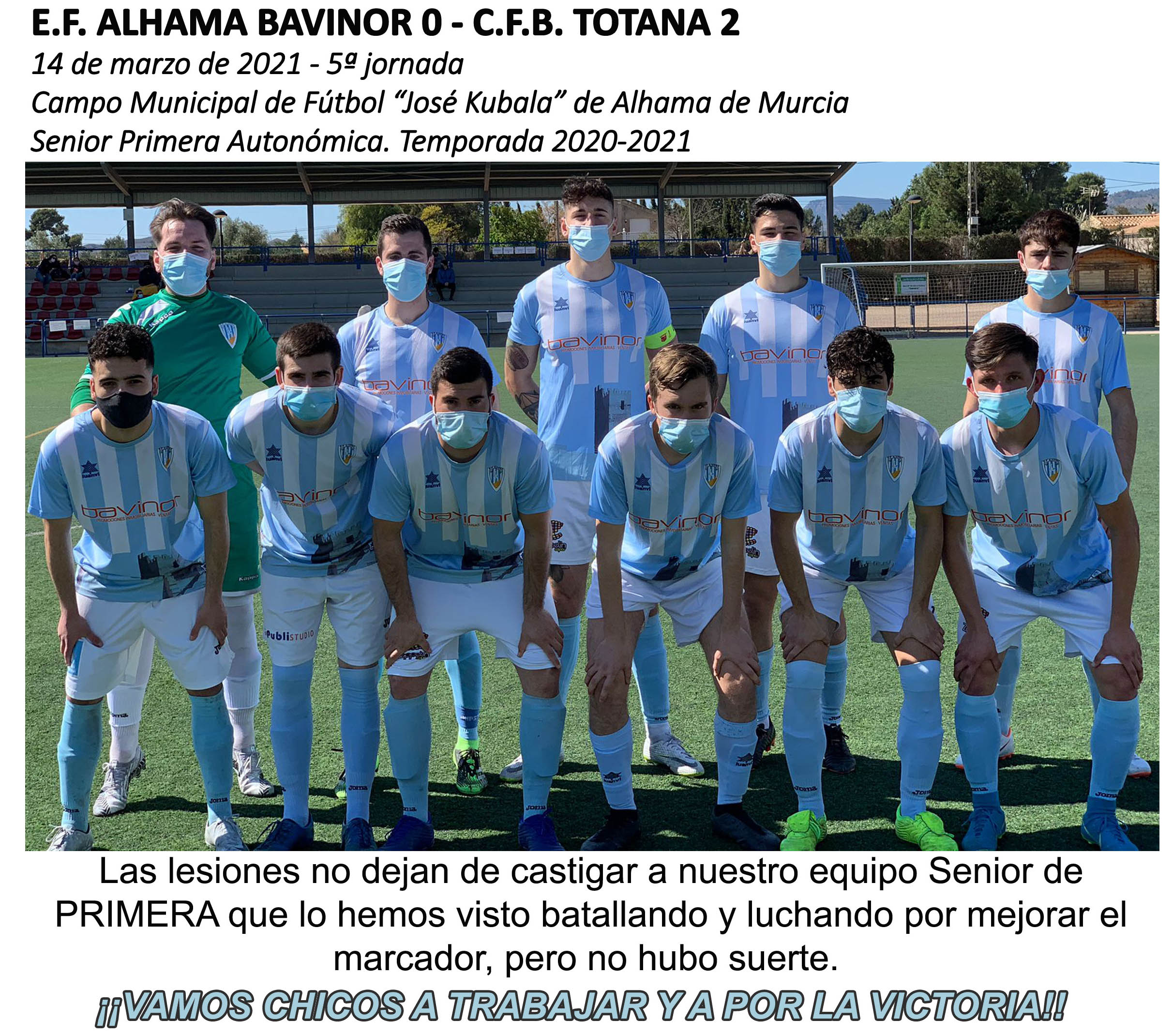 Las lesiones castigan al SENIOR DE PRIMERA Por josegonzalez14 de marzo de 2021Crónicas, Fotos, Noticias En este enlace podéis ver algunas fotos del partido: https://photos.app.goo.gl/7Mp7d9HDPFR7cWDE6