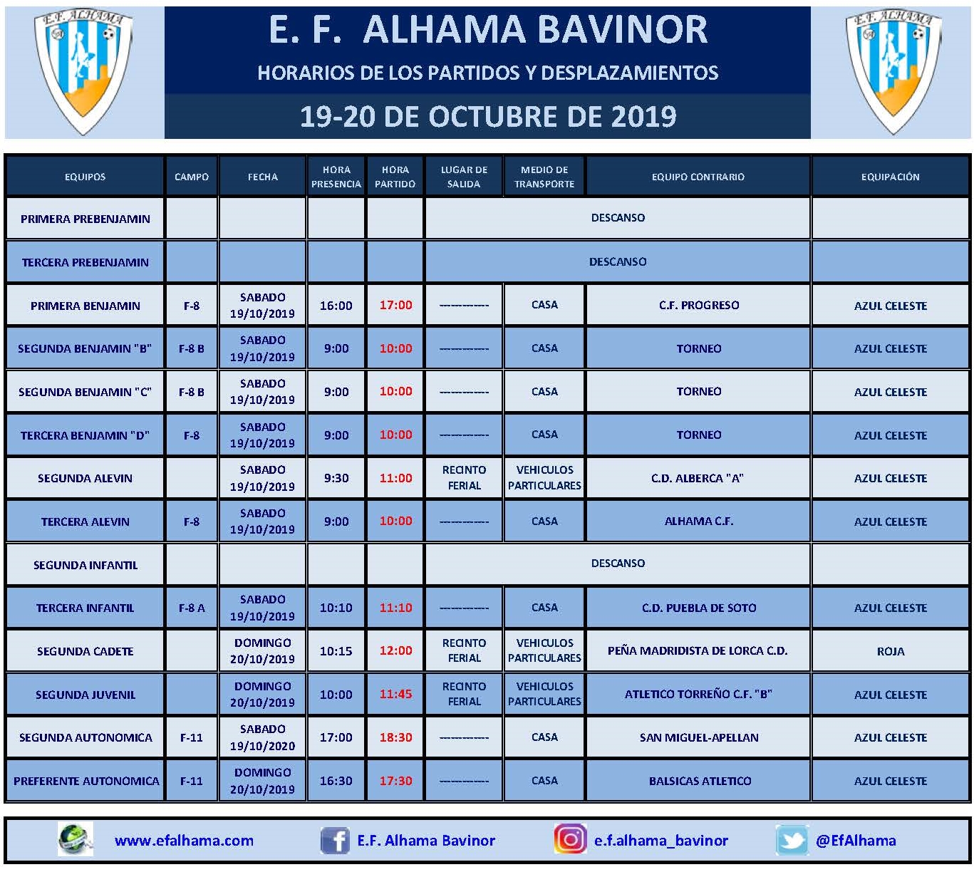 HORARIOS DE LOS PARTIDOS DE LA JORNADA DEL 26-27 DE OCTUBRE DE 2019. Por Redacción22 de octubre de 2019Horarios de los partidos, Noticias
