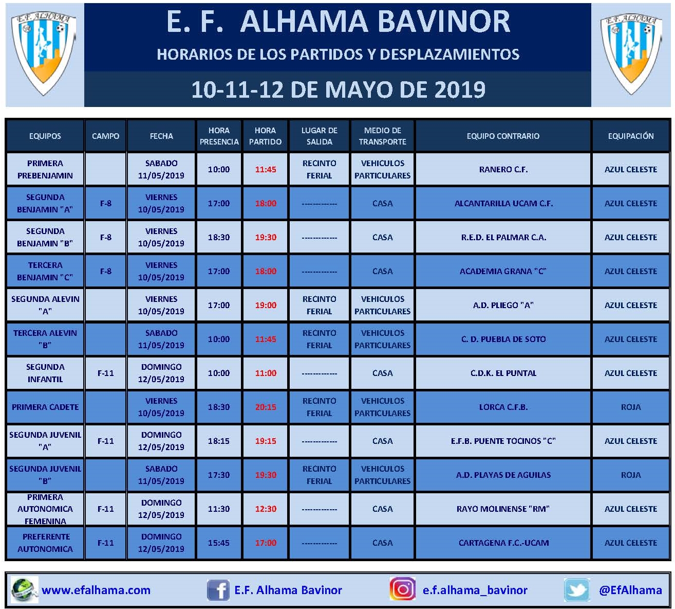 HORARIOS DE LOS PARTIDOS DE LA JORNADA DEL 5 DE MAYO DE 2019 Por Redacción1 de mayo de 2019Horarios de los partidos, Noticias
