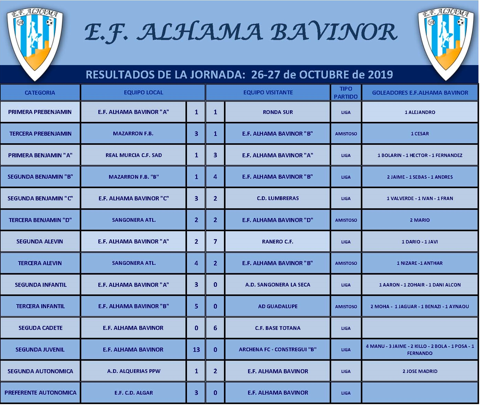 Resultados de la jornada del 27 de Octubre de 2019. Por Redacción28 de octubre de 2019Noticias, Resultados de los partidos