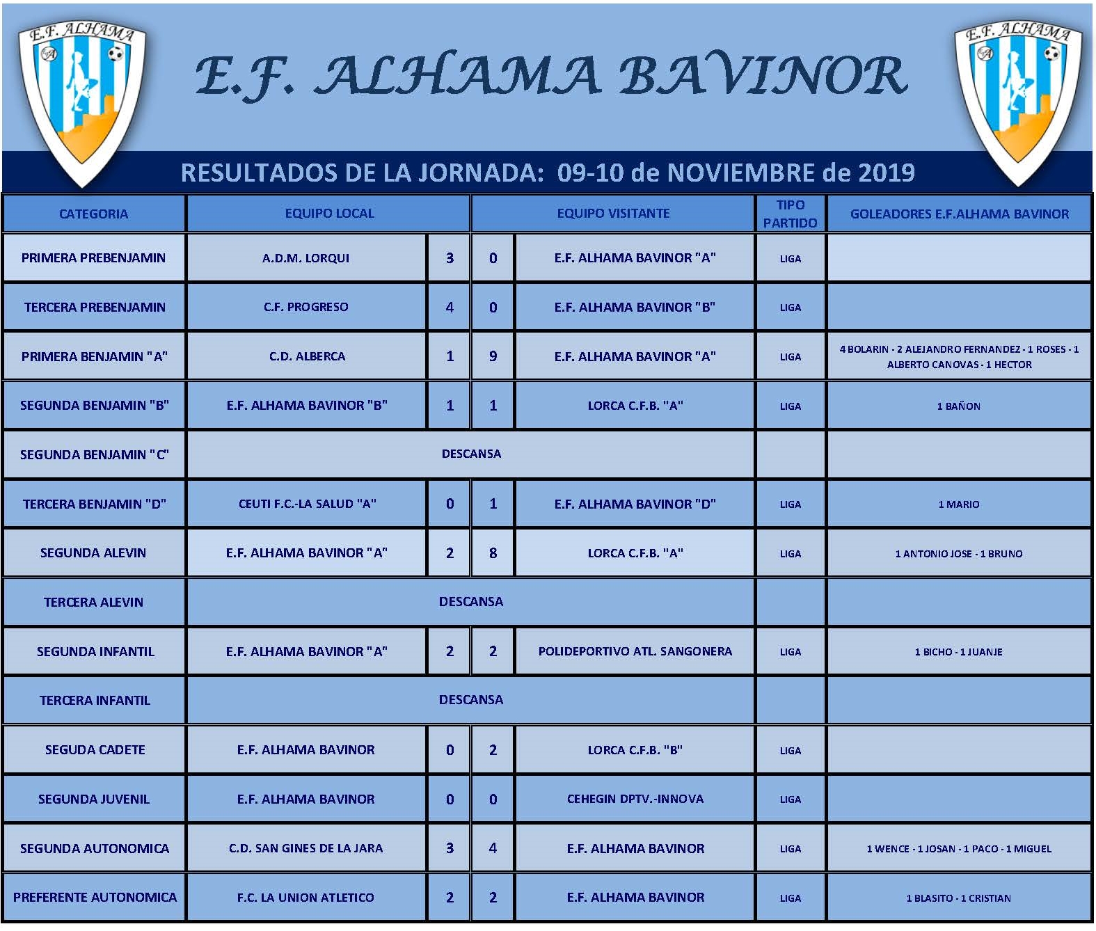 RESULTADOS DE LA JORNADA DEL 10 DE NOVIEMBRE DE 2019. Por Redacción10 de noviembre de 2019Noticias, Resultados de los partidos