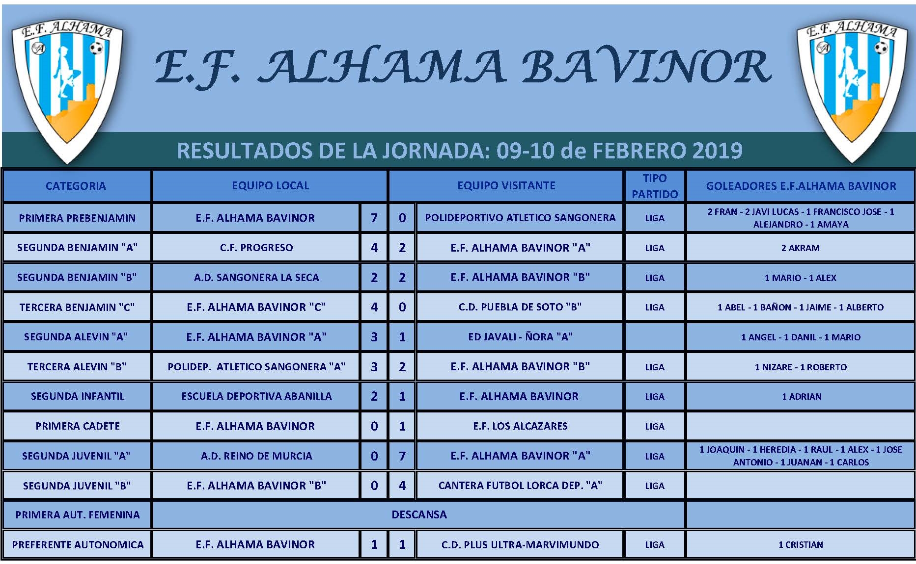 Resultados de la jornada de 9-10 de Febrero de 2019. Por Redacción11 de febrero de 2019Noticias, Resultados de los partidos