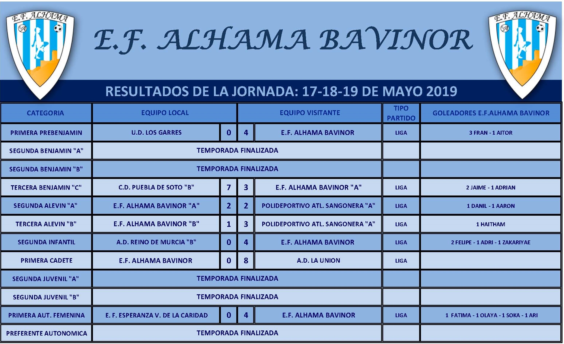 Resultados de la jornada del 19 de mayo de 2019. Por Redacción20 de mayo de 2019Noticias, Resultados de los partidos
